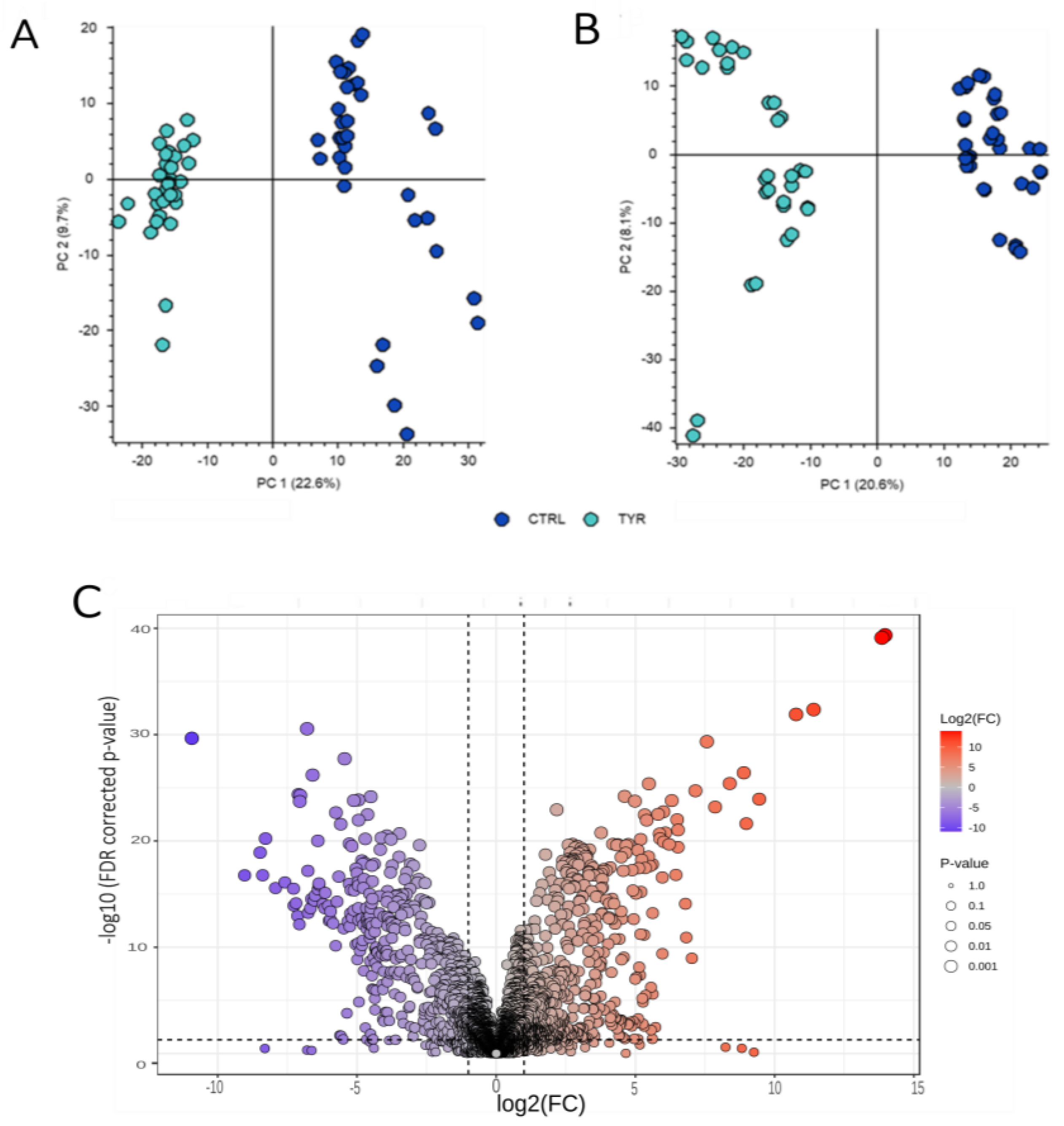 APA StyleSidorina, A., Rizzo, C., Leal-Witt, M. J., Arias, C., Cortés, I., Cornejo, V., Sacchetti, E., Catesini, G., Boenzi, S., Dionisi-Vici, C., & Fuenzalida, K. (2026). Untargeted Metabolomics Reveals Metabolic Reprogramming Linked to HCC Risk in Late Diagnosed Tyrosinemia Type 1. Metabolites, 16(1), 21. https://doi.org/10.3390/metabo16010021