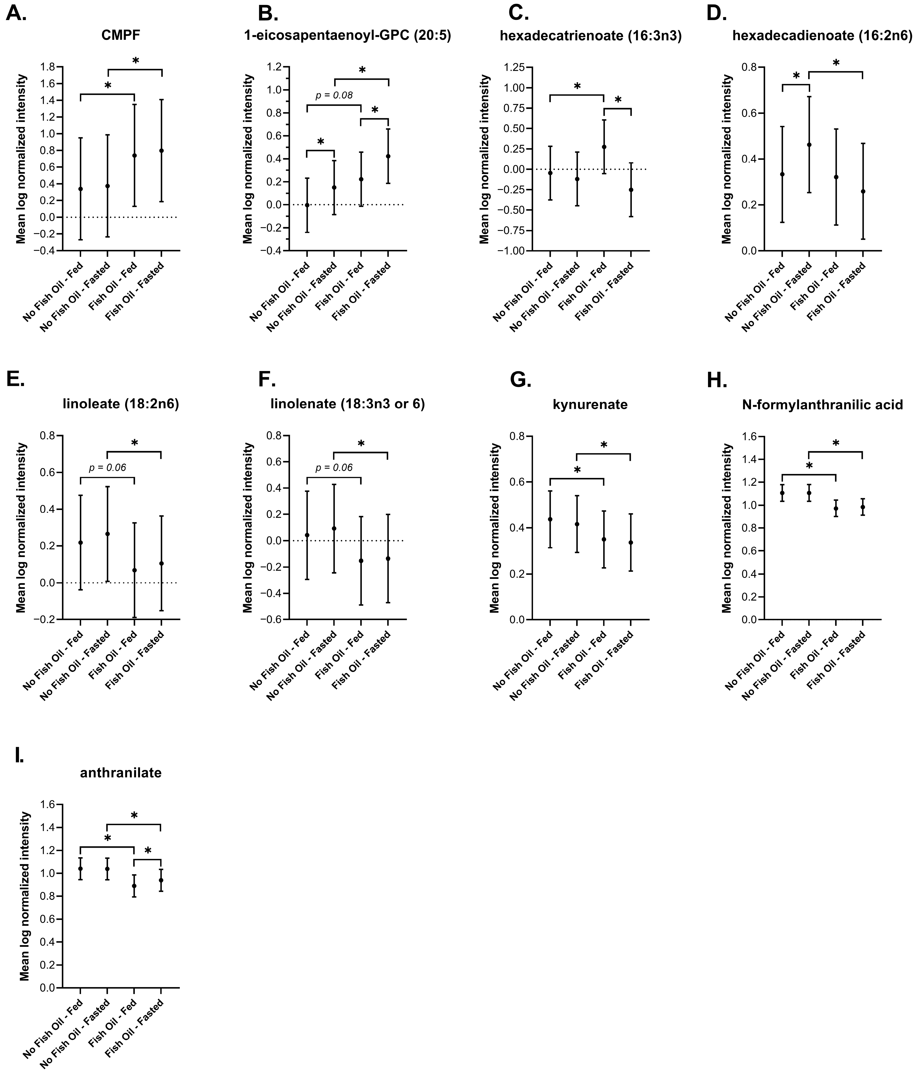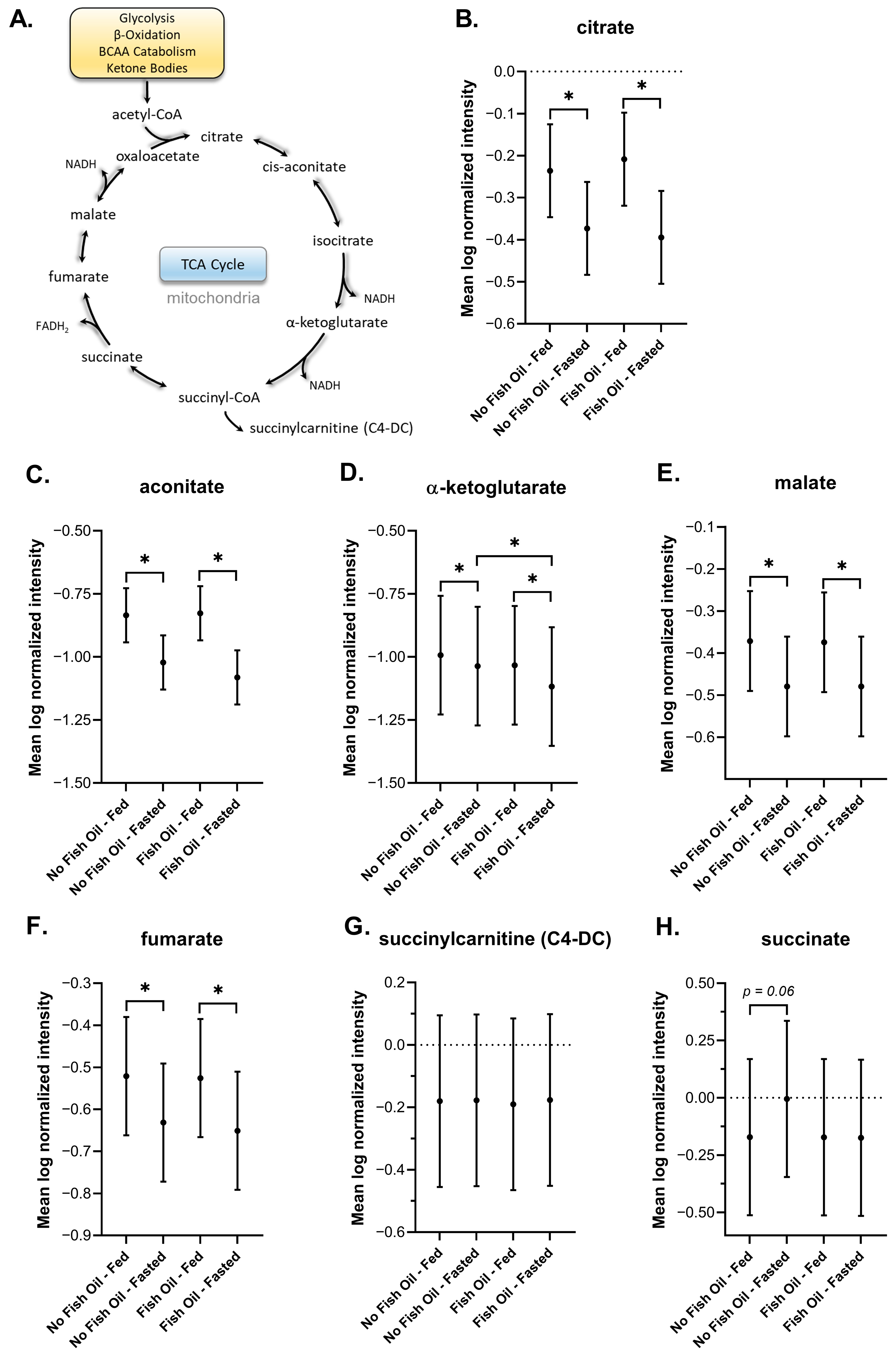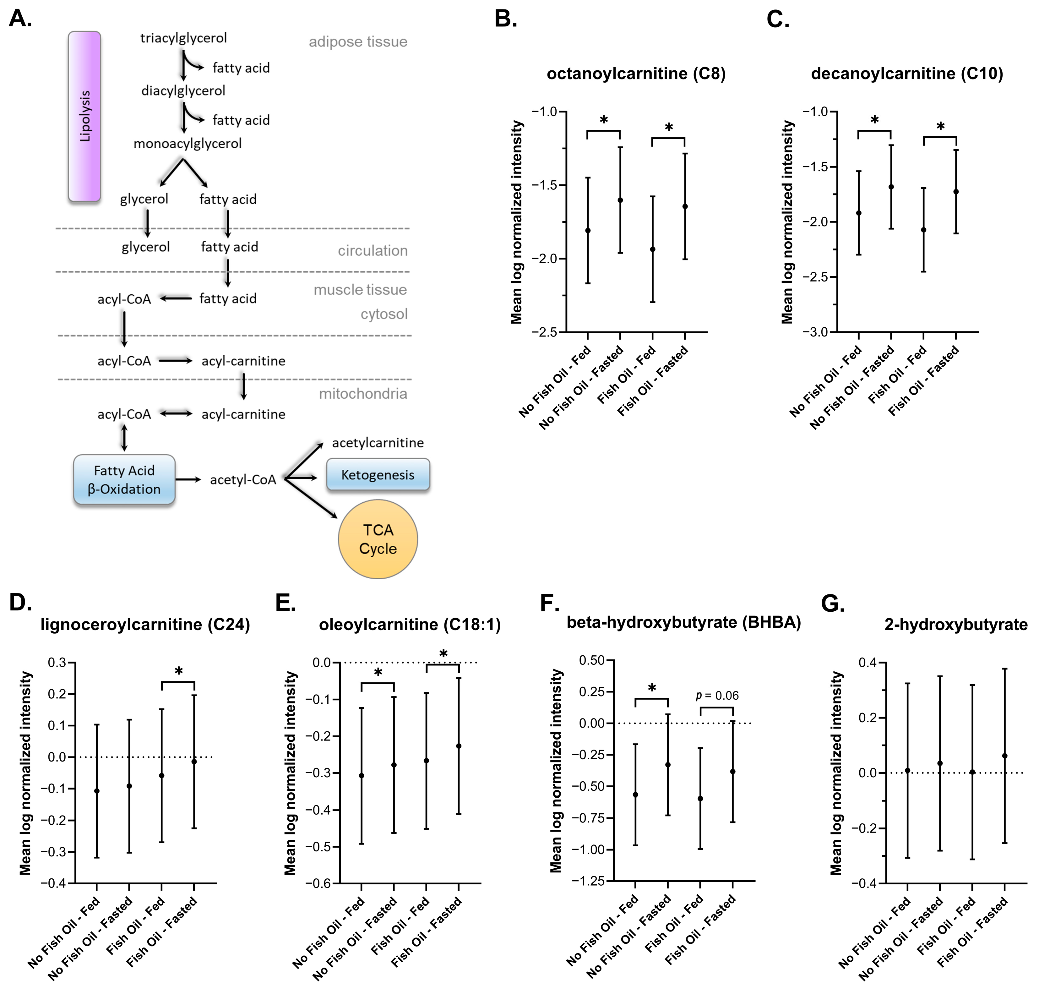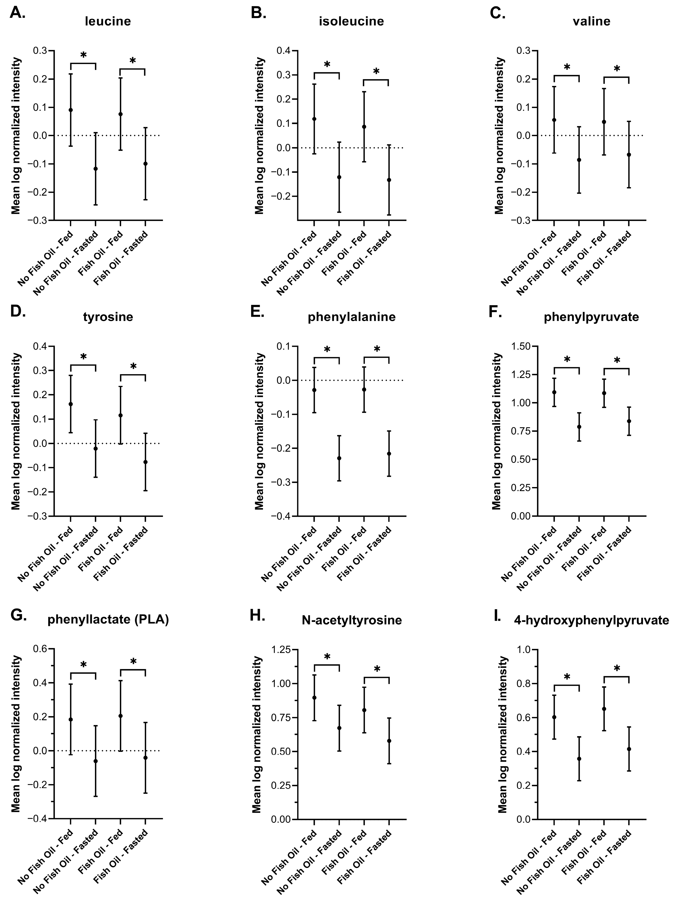 3.3. The Effects of Fish Oil on Metabolic Signatures of Feeding and Fasting