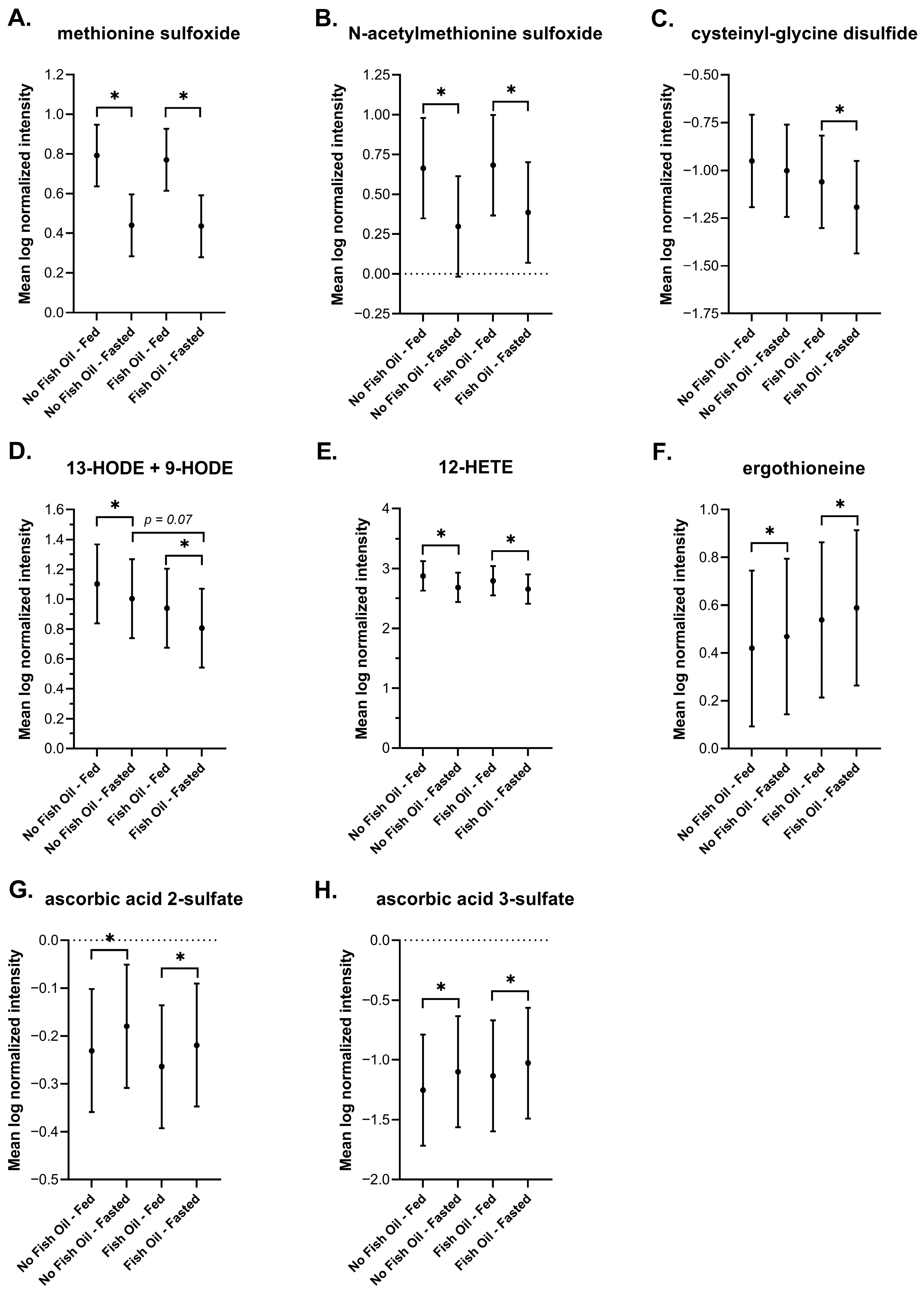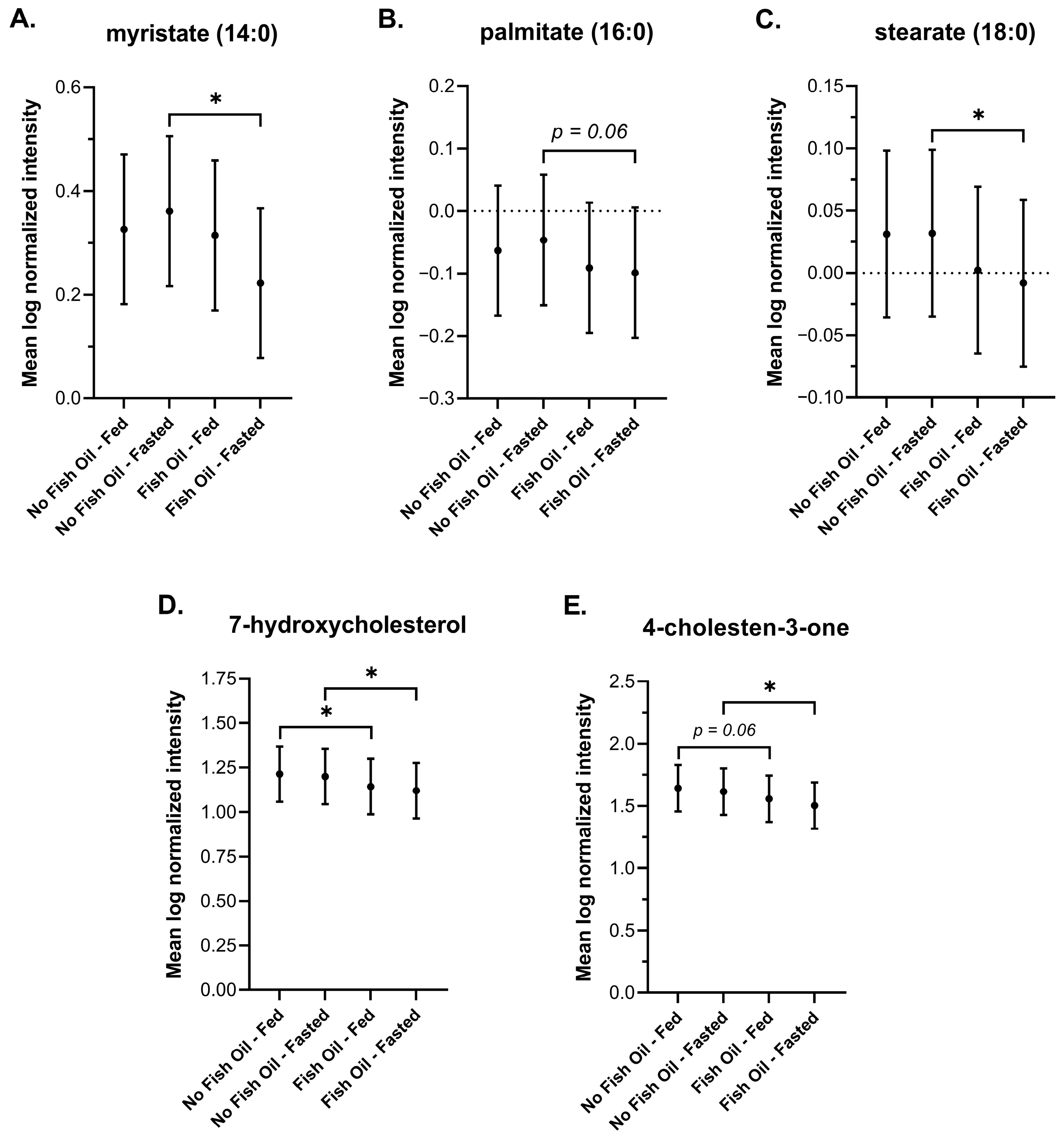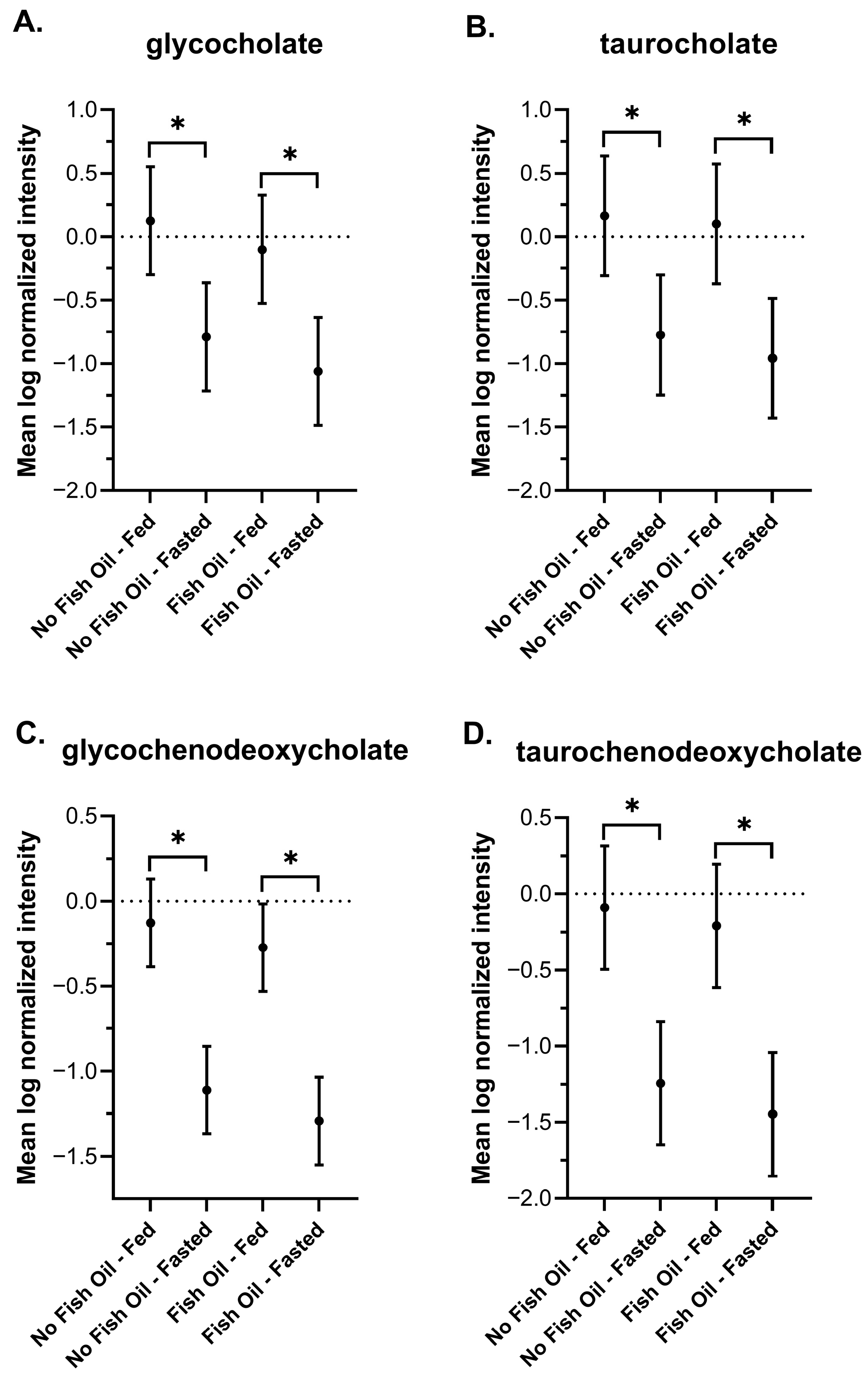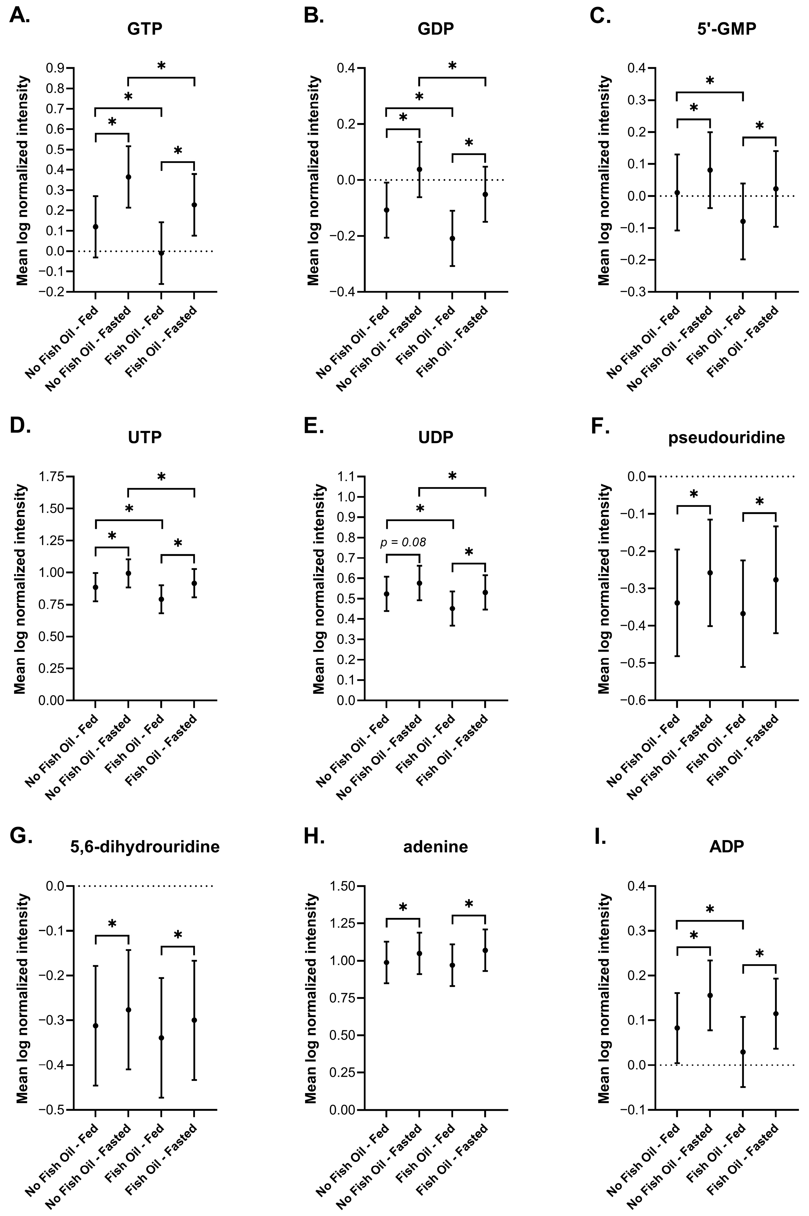 3.3. The Effects of Fish Oil on Metabolic Signatures of Feeding and Fasting