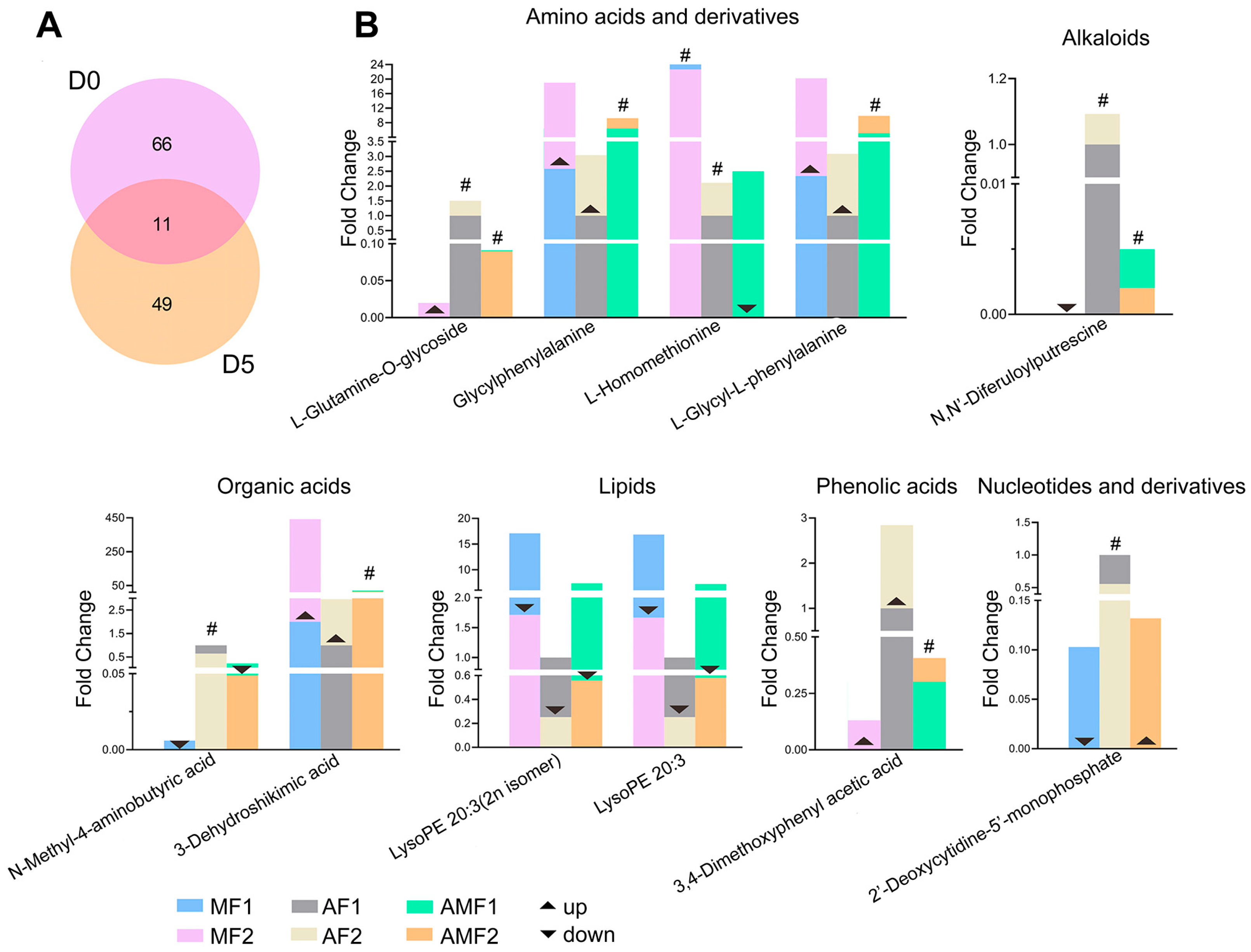 3.4. Analysis of Metabolites Related to Artificial Diet Addition