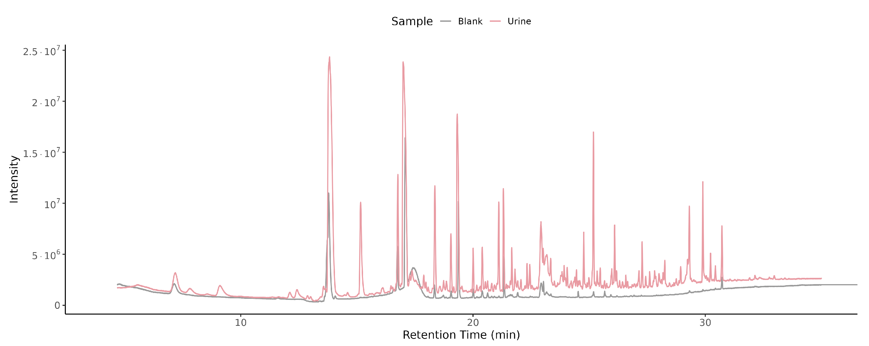 3.3. Comparison of Urine Samples and Blanks