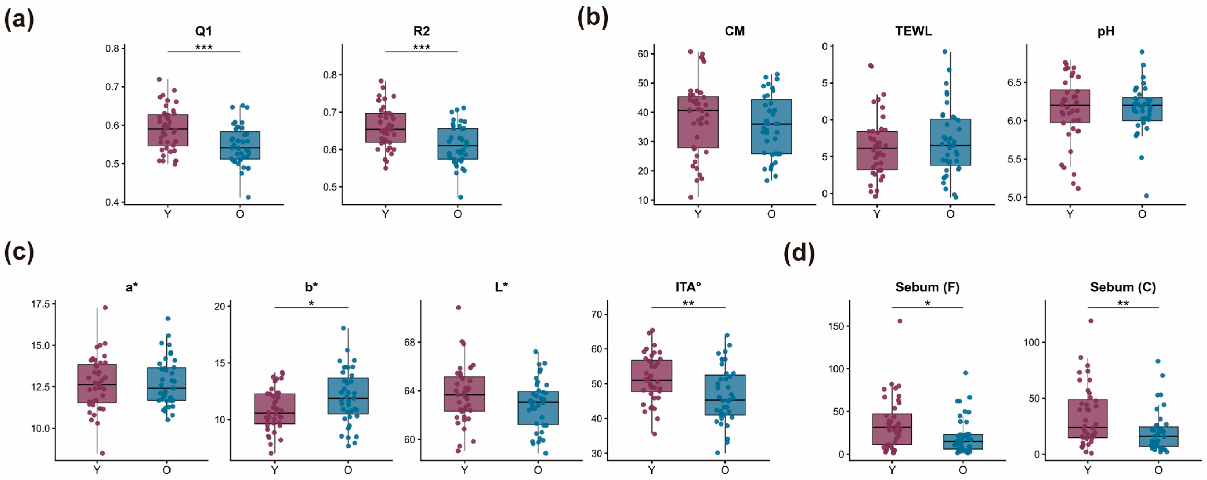3.1. Age-Related Changes in Skin Physiological Parameters
