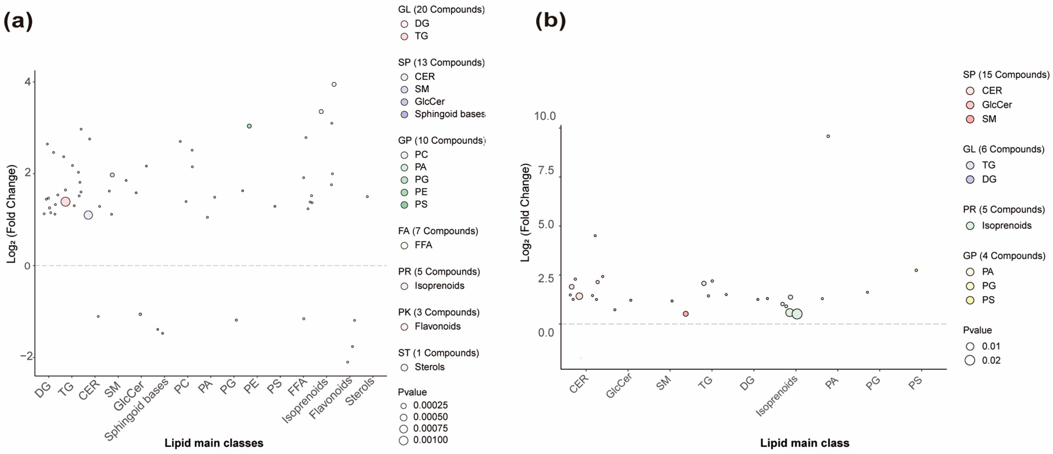 3.2. Analysis of Skin Surface Lipid Metabolism Based on Non-Targeted Lipidomics