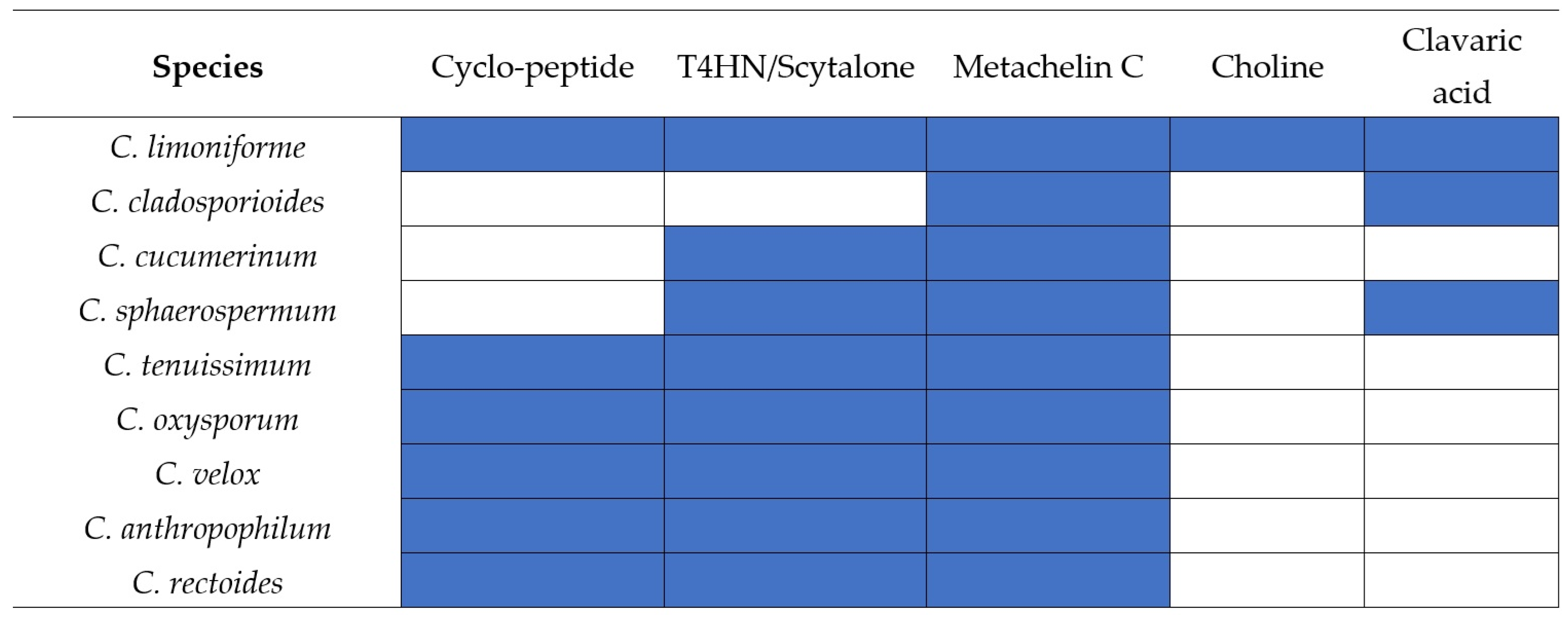 | C. tenuissimum | 36 | 6 | 30 |