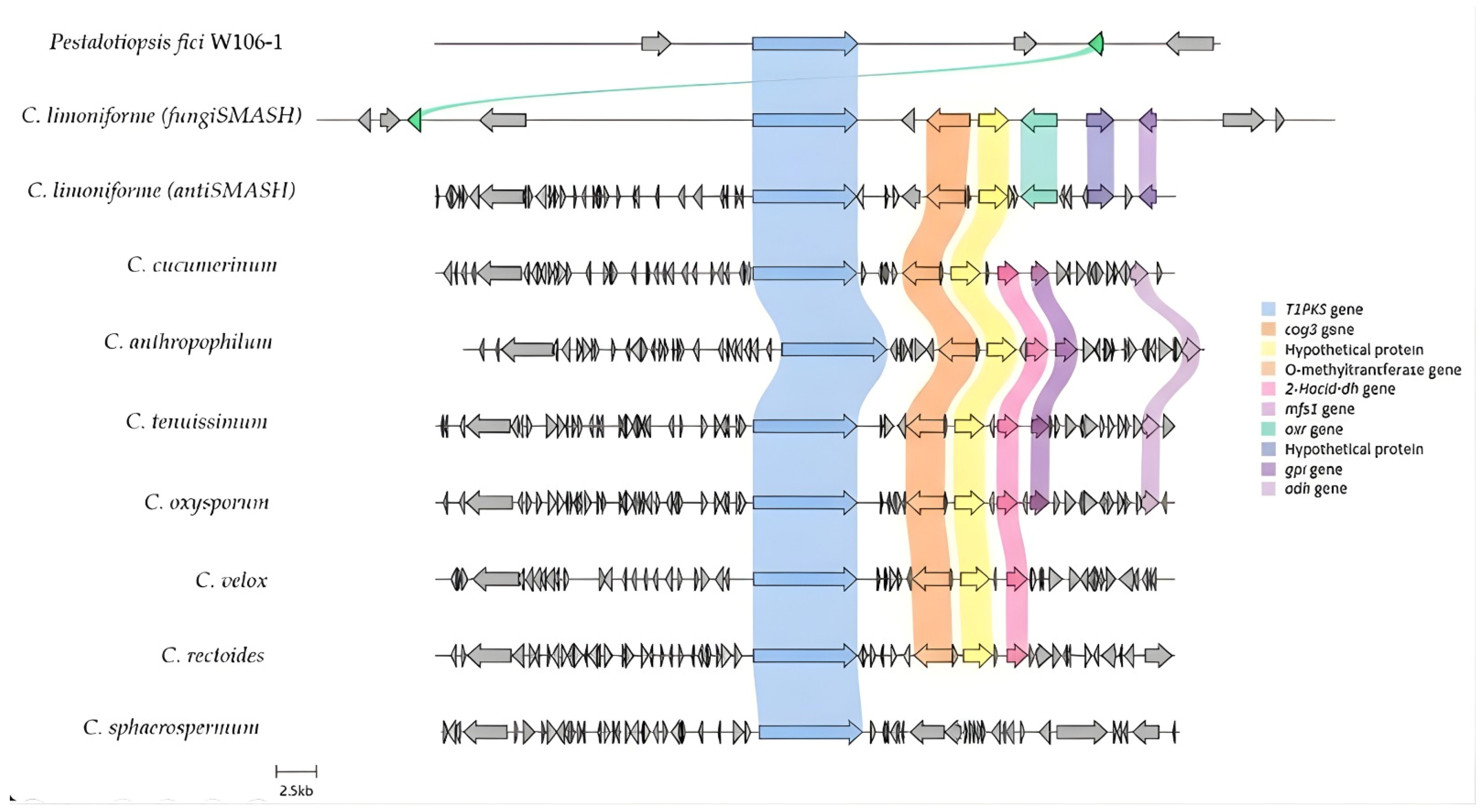 3.6. Evolutionary Relationship of the T1PKS Among Species of the Genus Cladosporium