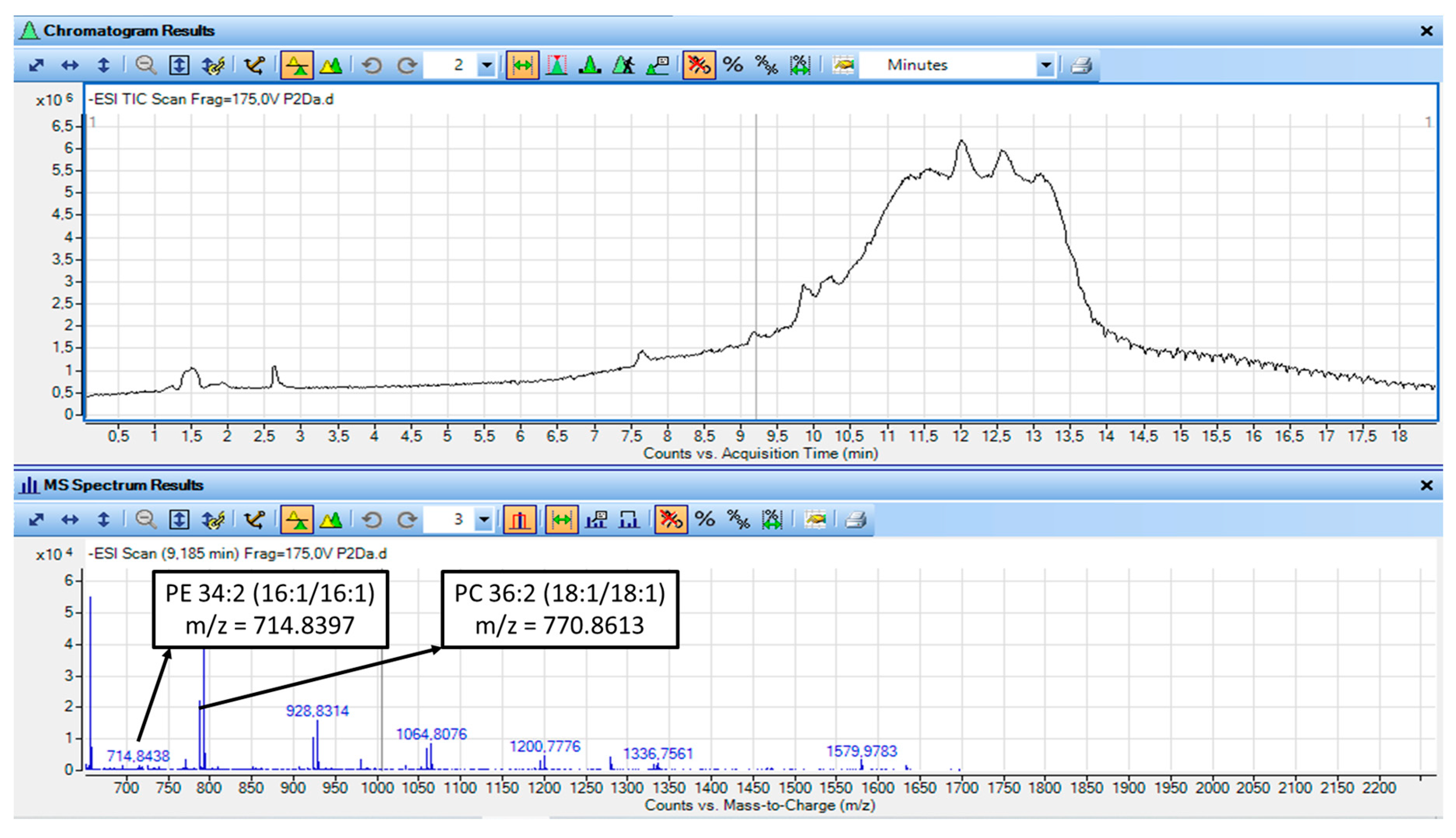 | 9.2 | 714.844 | PE 34:2 | PE 16:0|18:2 or PE 16:1|18:1 | |