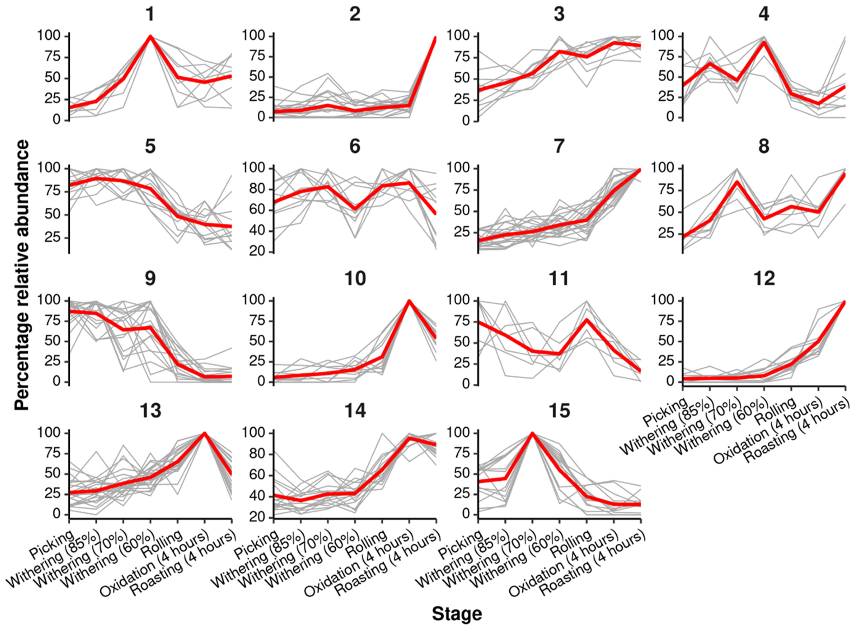 - Fang, X.; Xue, R.; Xiao, J.; Pu, Q.; Wang, Y.; Yuan, Y.; Liu, B.; Sui, M.; Jiang, G.; Niaz, R.; et al. Effects of different fermentation modes on tea leaves: Revealing the metabolites modification by quasi-targeted metabolomics. Food Biosci. 2024, 62, 105223. [Google Scholar] [CrossRef]