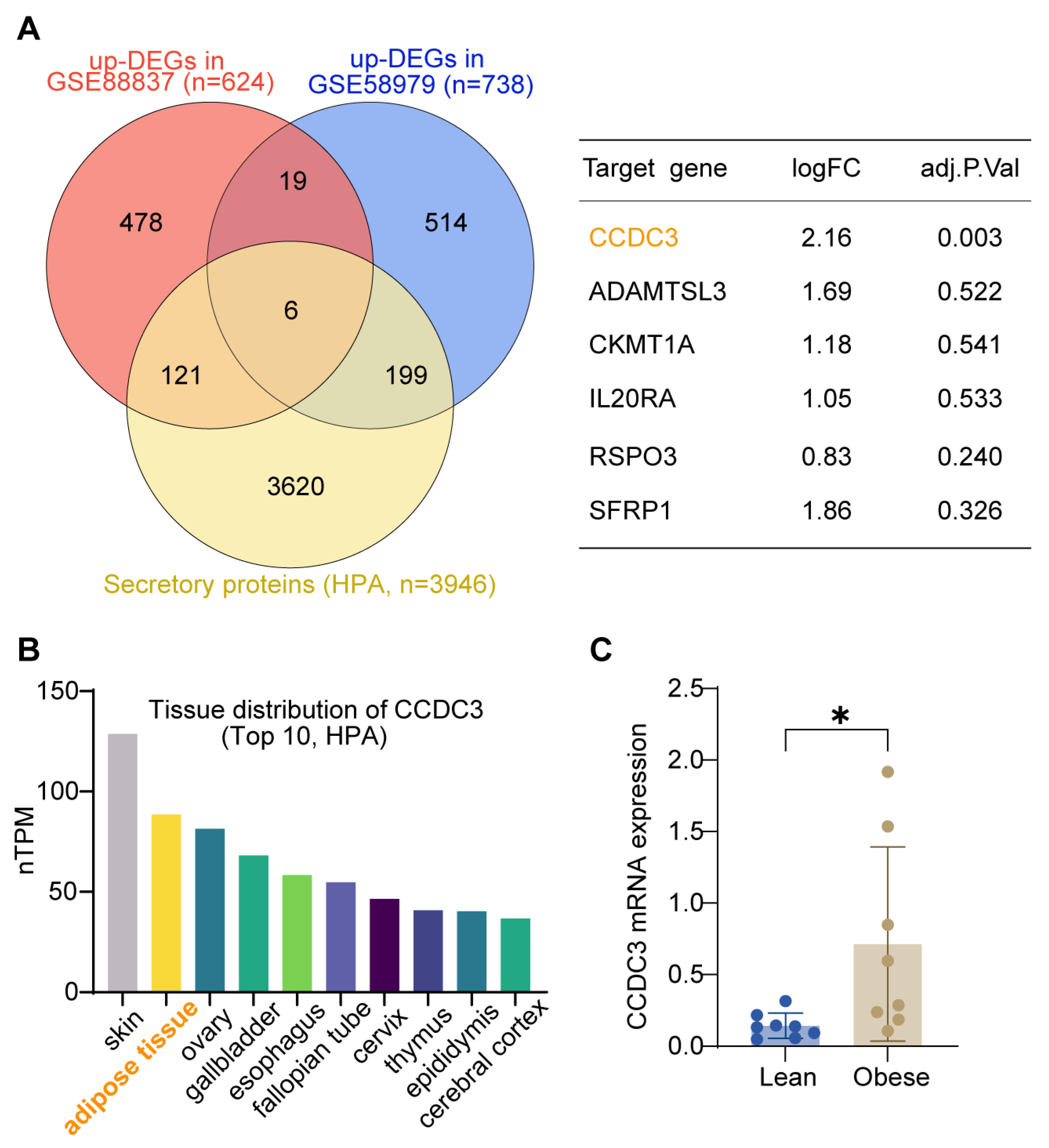 3.1. Identification of CCDC3 as a VAT-Enriched Secretory Gene
