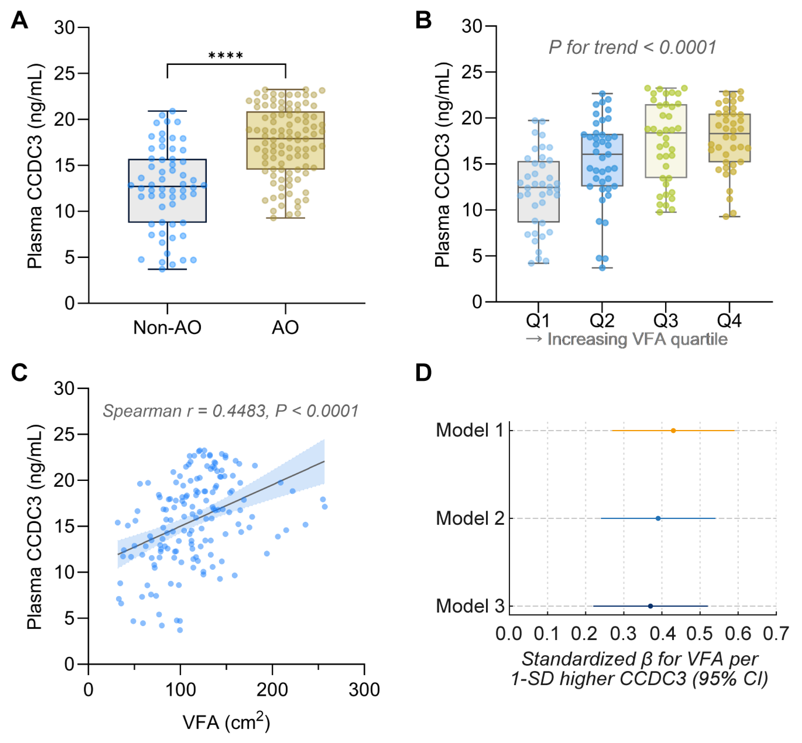 3.3. Association Between Plasma CCDC3 Levels and VFA