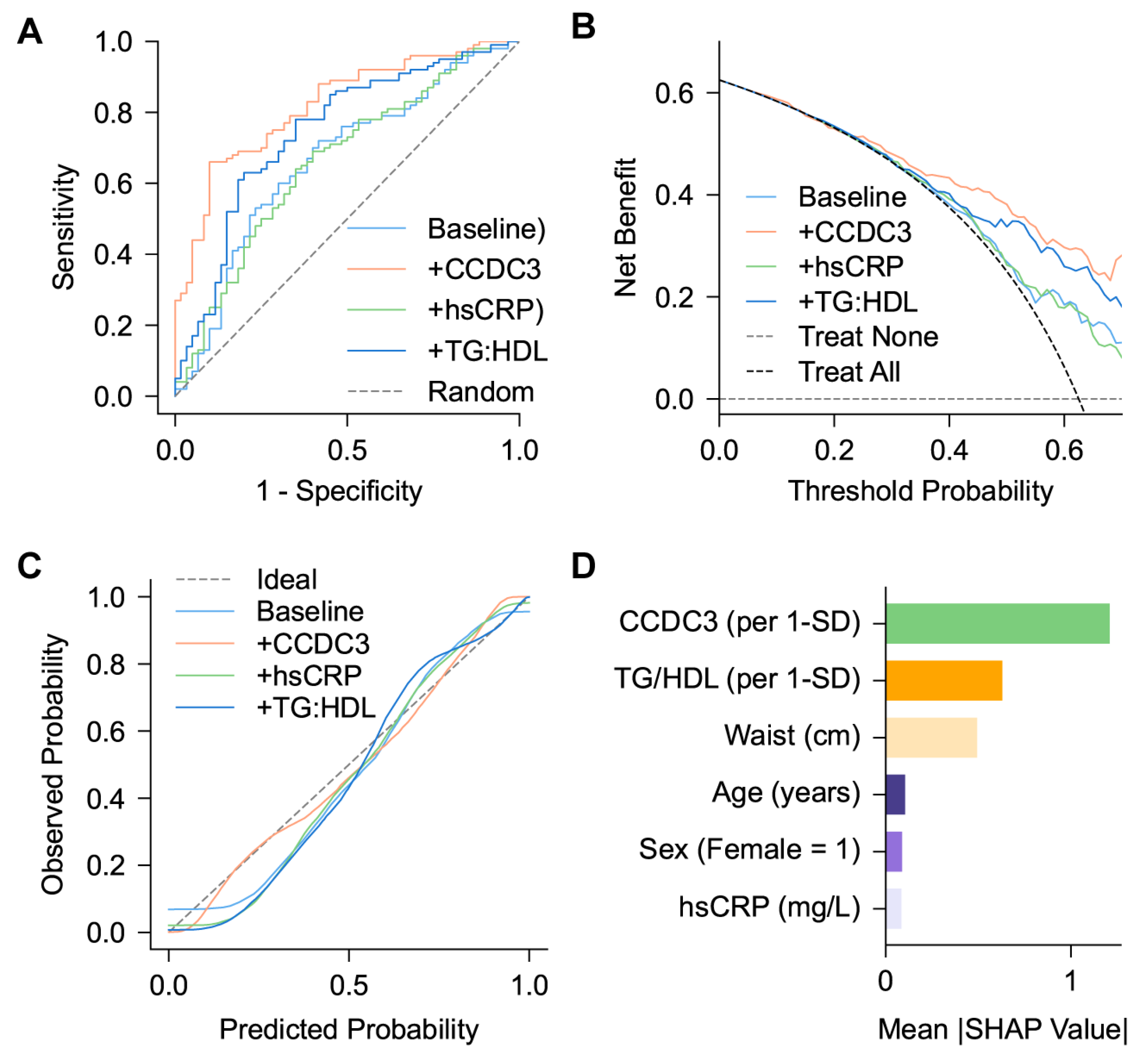 3.4. Clinical Utility of Circulating CCDC3 in Abdominal Obesity