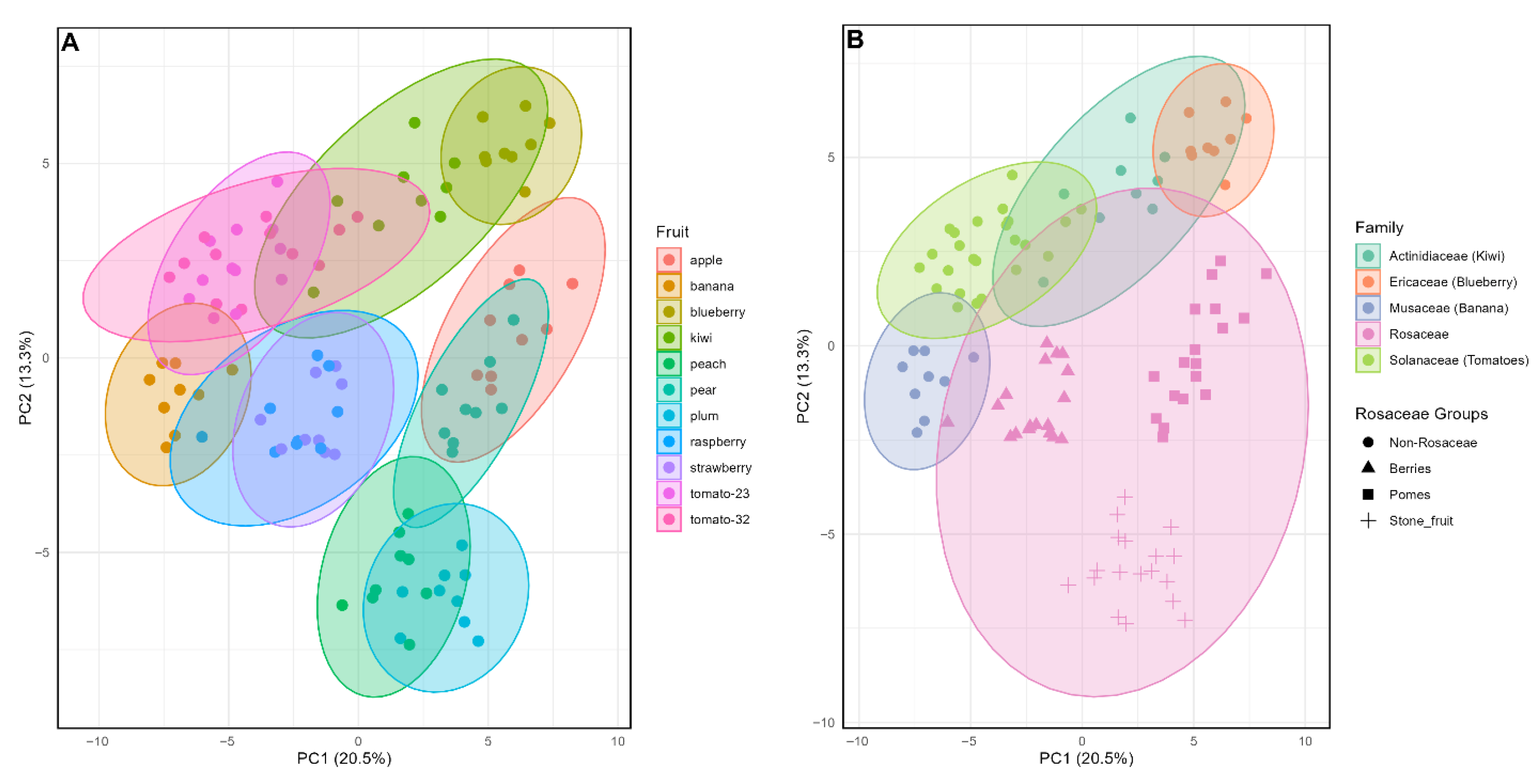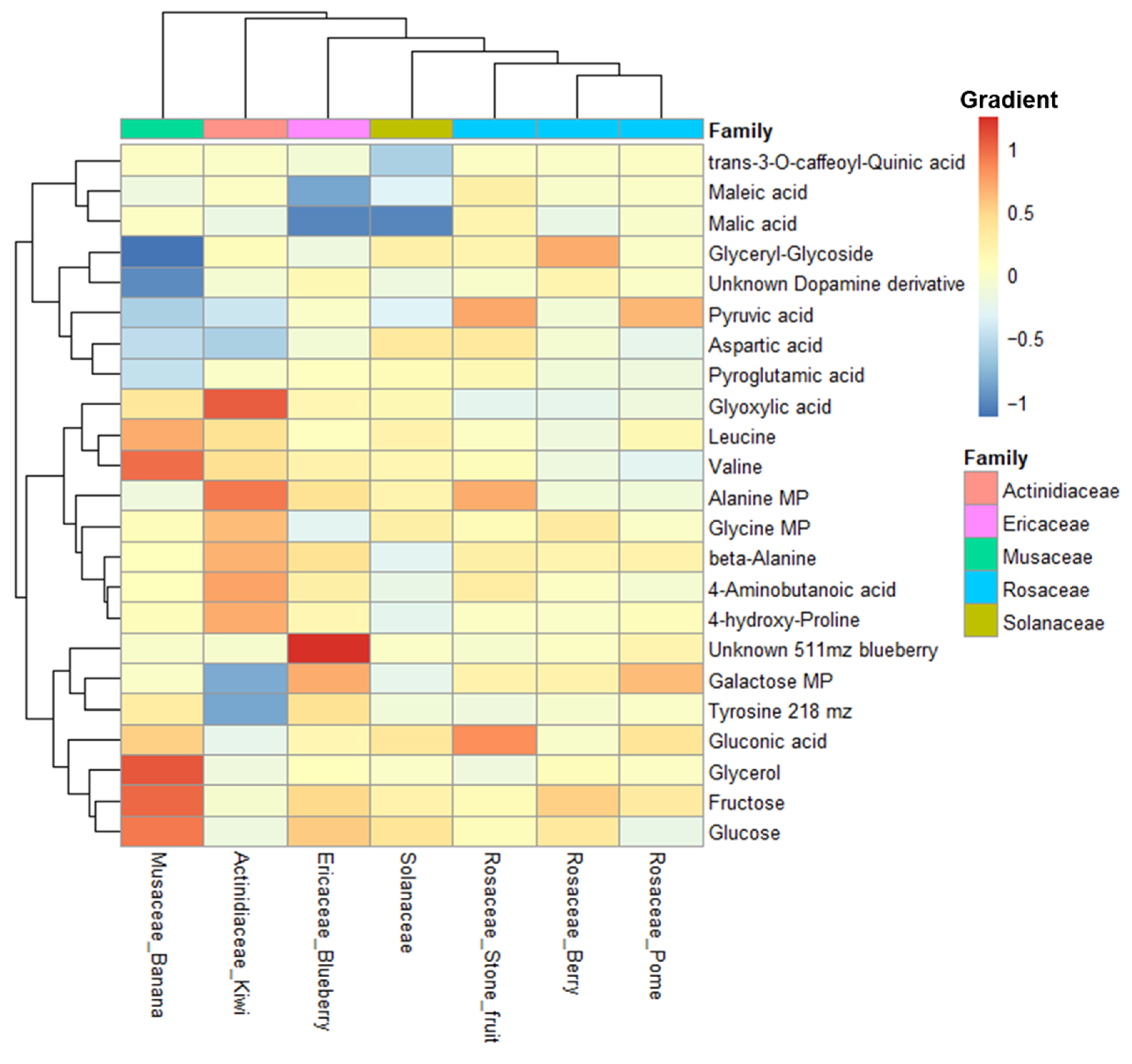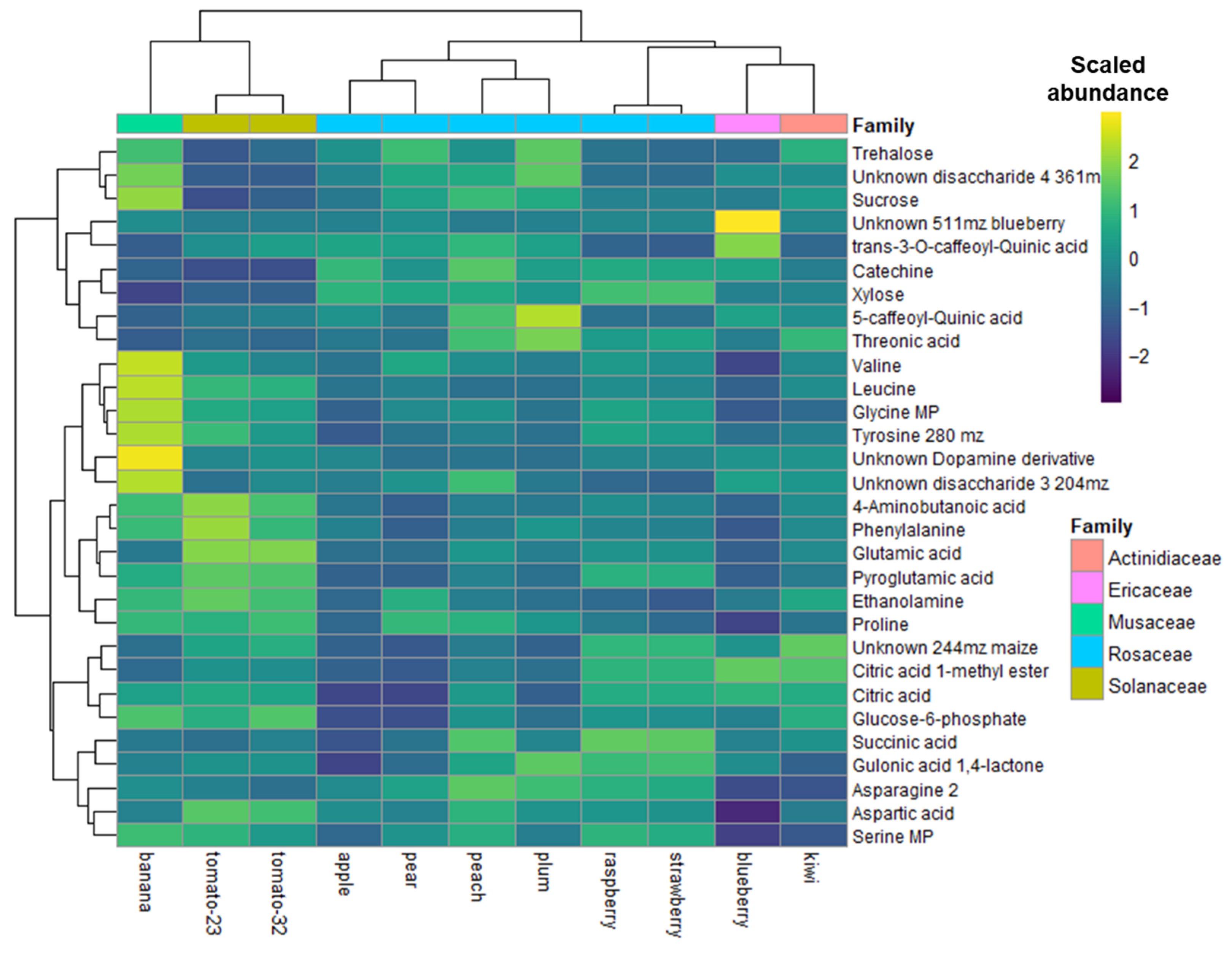 4.1. The Fruit Metabolome Reflects Phylogenetic Relationships