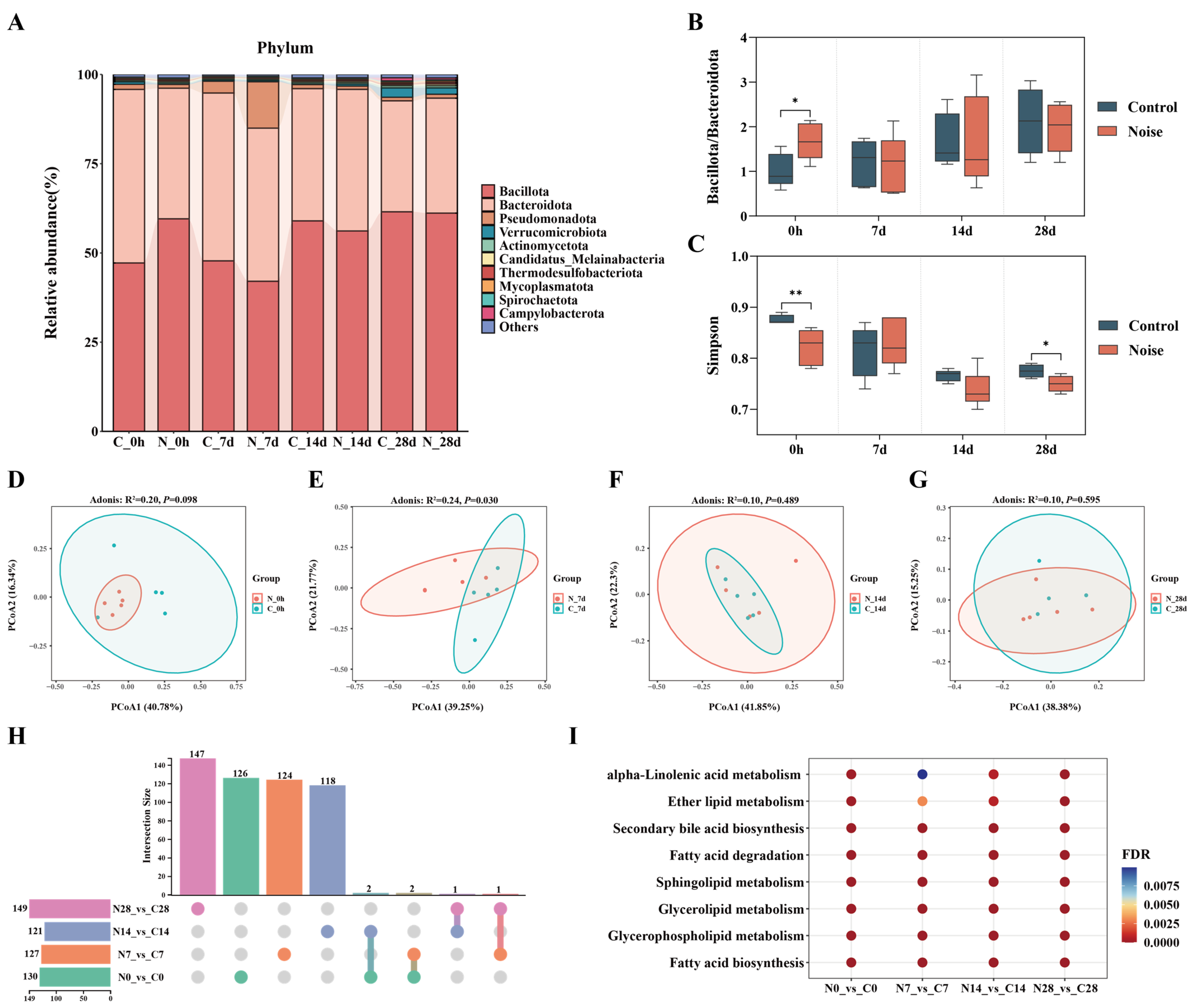 - Wu, S.; Du, W.; Wu, Z.; Wen, F.; Zhong, X.; Huang, X.; Gu, H.; Wang, J. Effect of chronic noise exposure on glucose and lipid metabolism in mice via modulating gut microbiota and regulating CREB/CRTC2 and SREBP1/SCD pathway. Ecotoxicol. Environ. Saf. 2024, 270, 115887. [Google Scholar] [CrossRef] [PubMed]