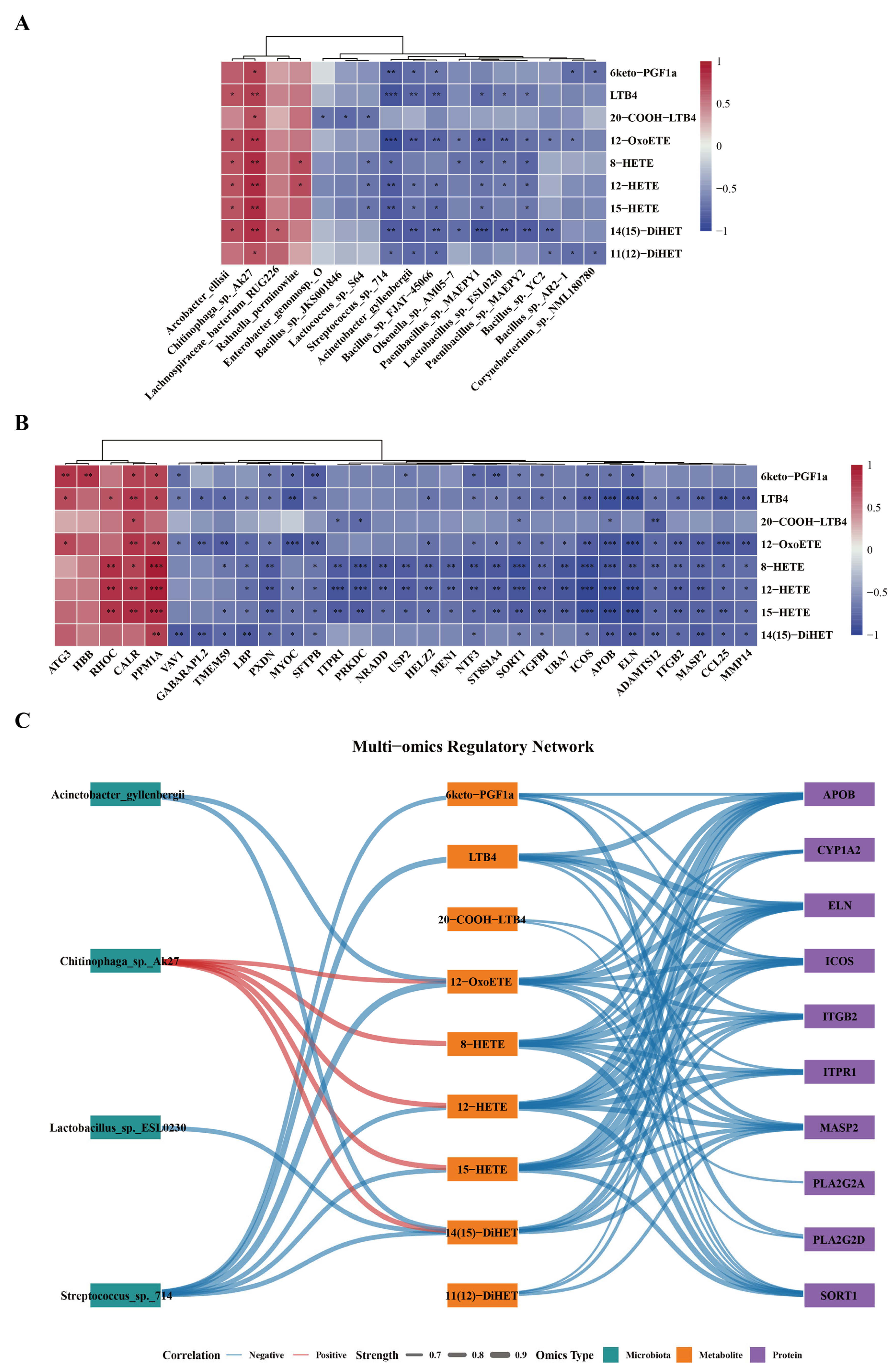 3.6. Integrative Multi-Omics Analysis Reveals Coordinated Microbiota–Metabolite–Protein Perturbations Following Acute Noise Exposure