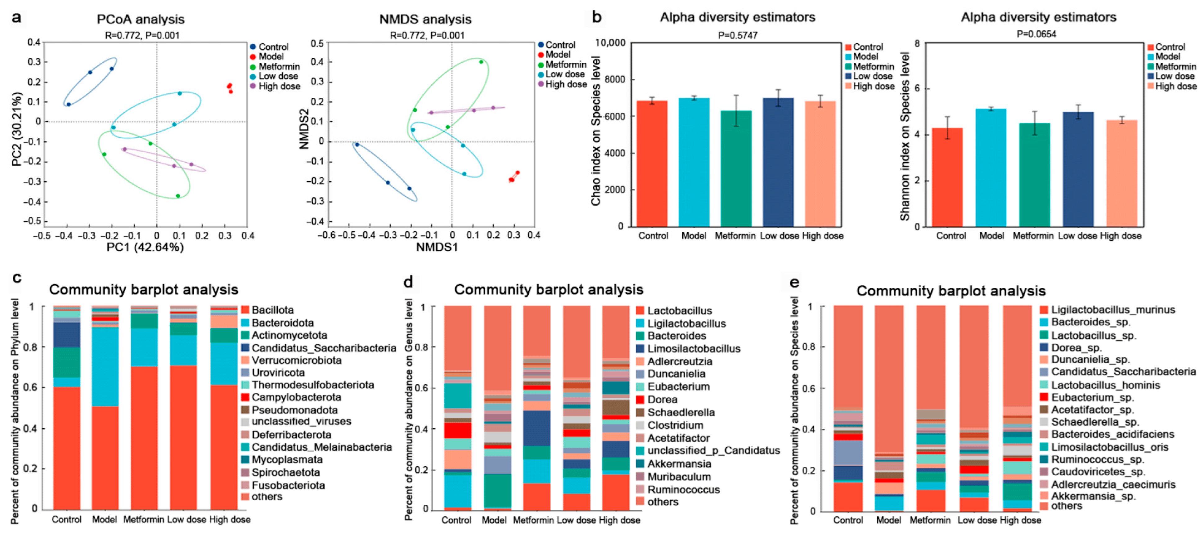 3.2.1. Effect of CPCM on Gut Microbiota Diversity in db/db Mice
