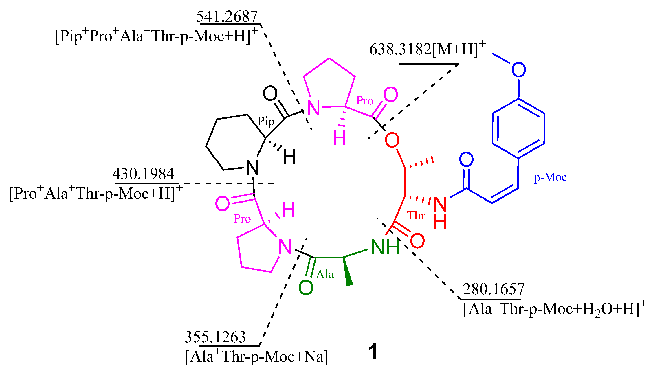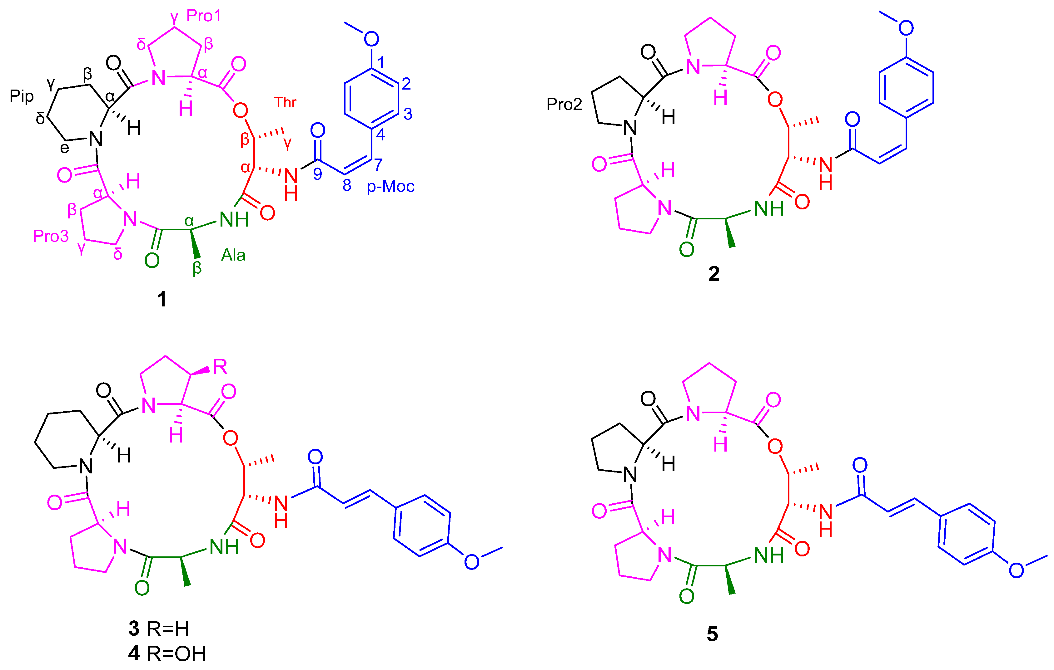 3.3. Structural Elucidation and Identification of Pentadepsipeptides