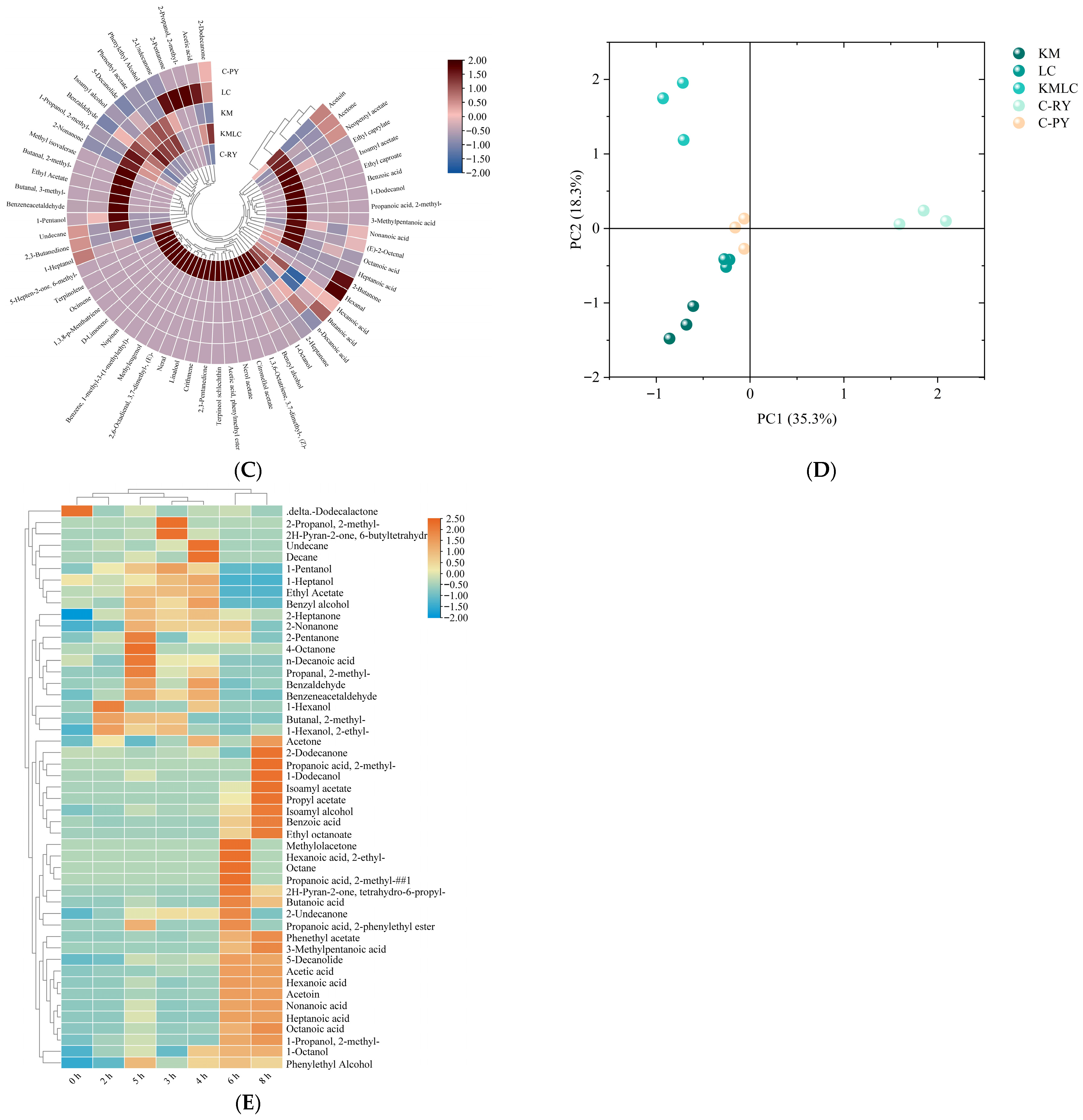 3.3.2. Dynamic Flavoromics Analysis During the Fermentation Process of KMLC Fermented Milk