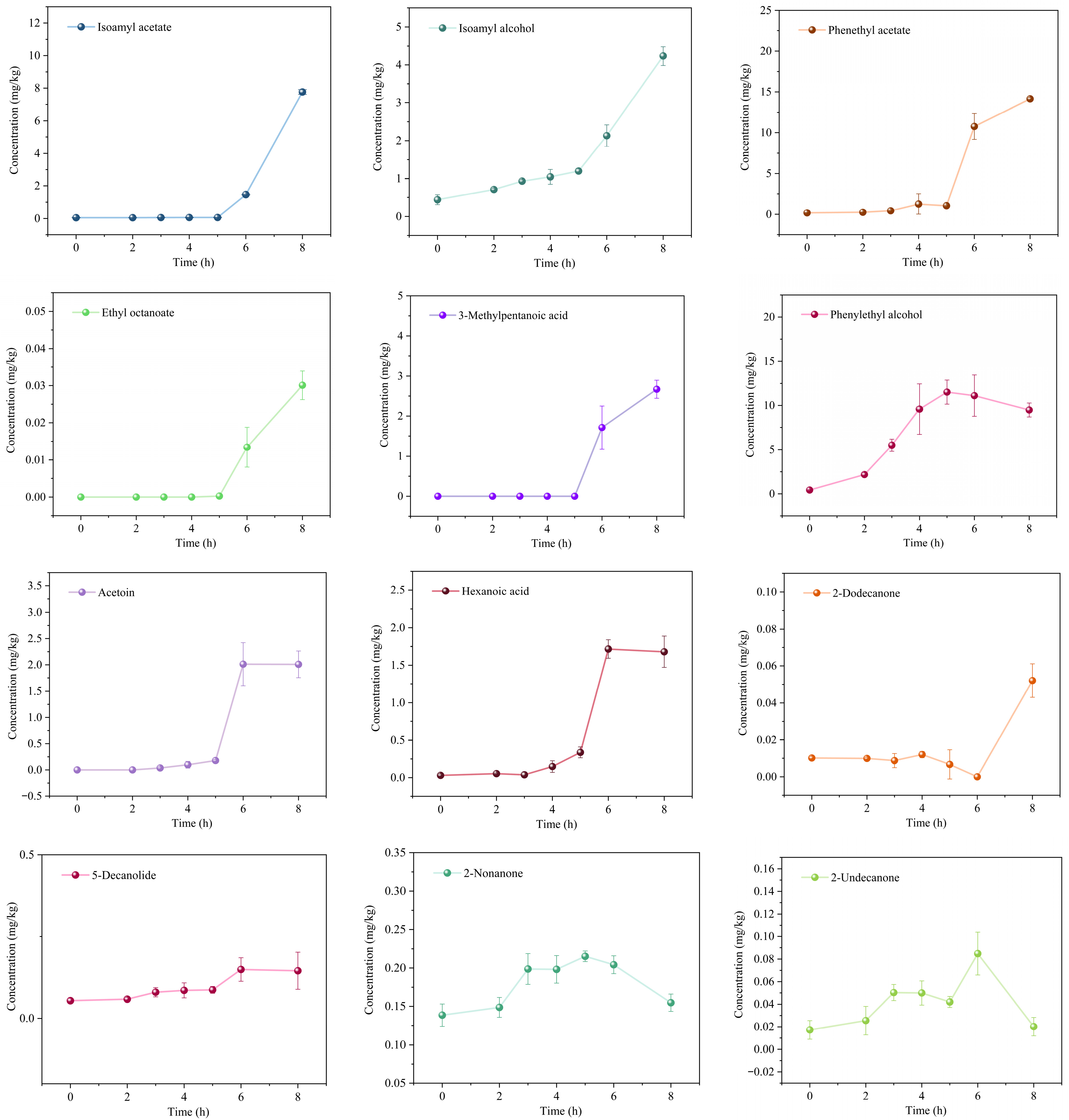 | Ketones | Acetoin | 513-86-0 | 143.50 | 2.01 ± 0.23 | Milk, buttery, creamy |