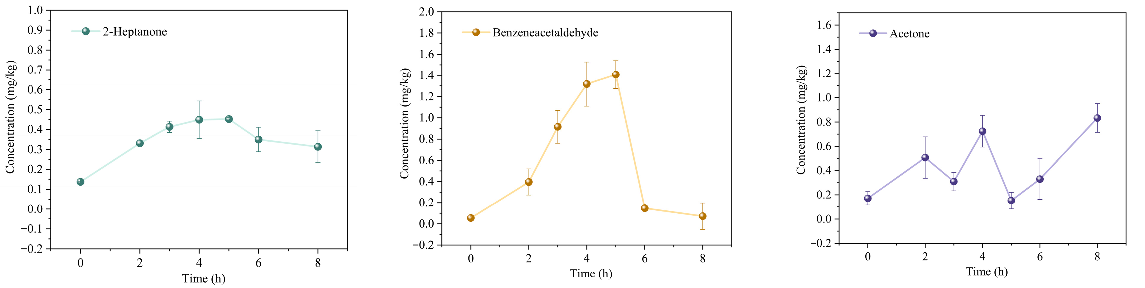 | 2-Heptanone | 110-43-0 | 2.24 | 0.31 ± 0.08 | Sweet, herbal, coconut, woody, fruity | |