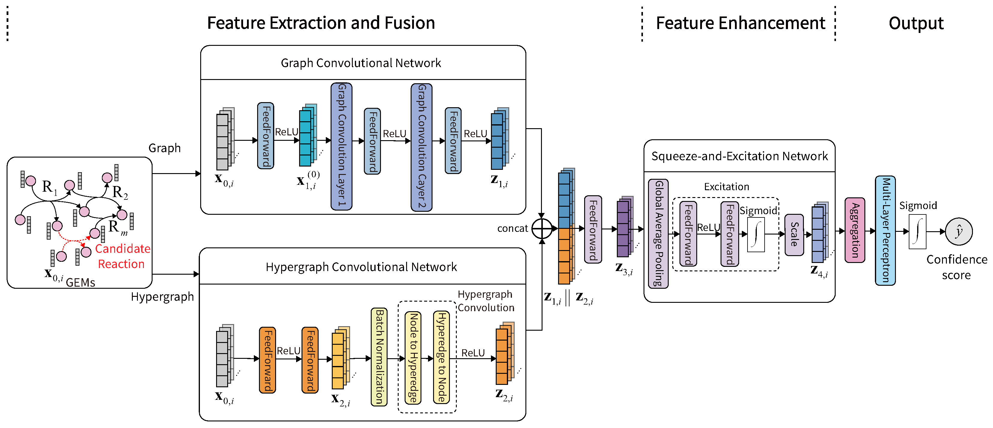 25] further constructs homogeneous and heterogeneous graphs to identify substrates and products in GEMs based on Chebyshev spectral convolutional networks and selects appropriate reactions to implement gap-fillings. Multi-HGNN [