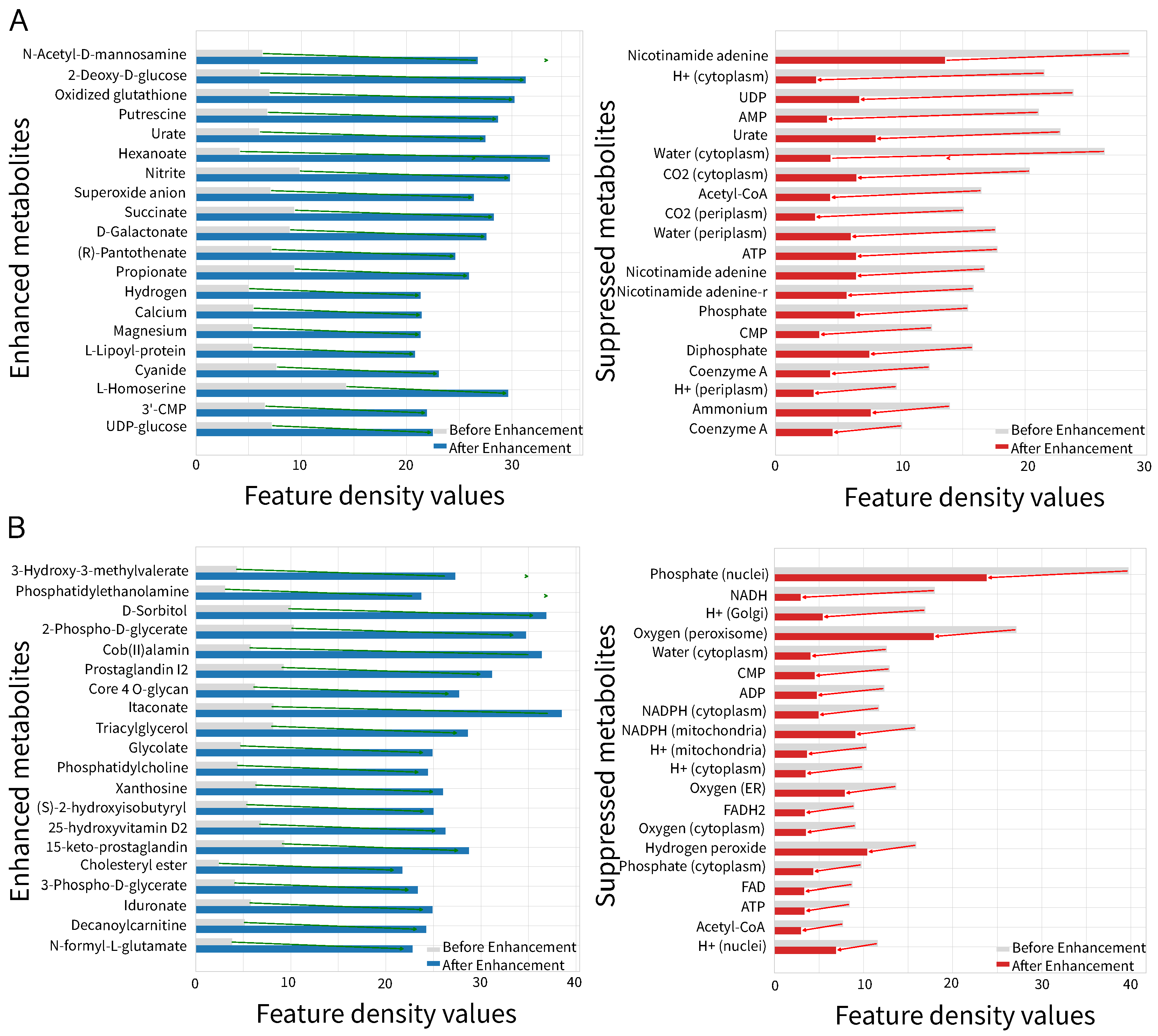 Visualization of features enhancement using the squeeze-and-excitation network for (A) iML1515 and (B) Recon3D.