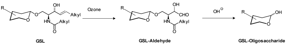 - Li, Y.T.; Chou, C.W.; Li, S.C.; Kobayashi, U.; Ishibashi, Y.H.; Ito, M. Preparation of homogenous oligosaccharide chains from glycosphingolipids. Glycoconjugate J. 2009, 26, 929–933. [Google Scholar]