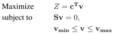 For a given metabolic model, flux-balance analysis (FBA) [11] enables the computation of a steady-state flux distribution that maximizes a specific biological objective Z (e.g., maximal biomass production). Generally, the linear optimization problem defined in FBA can be stated as follows: