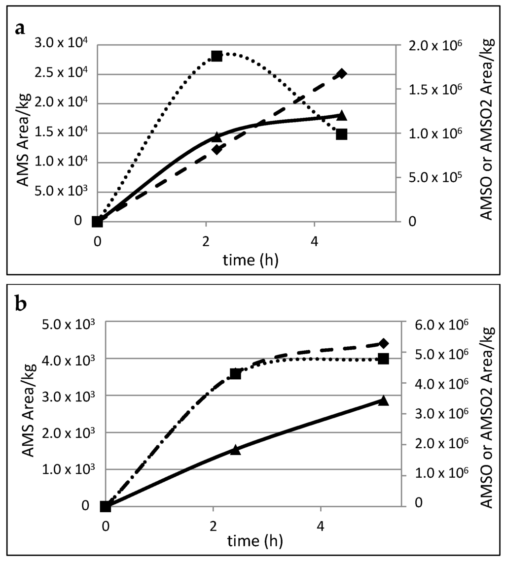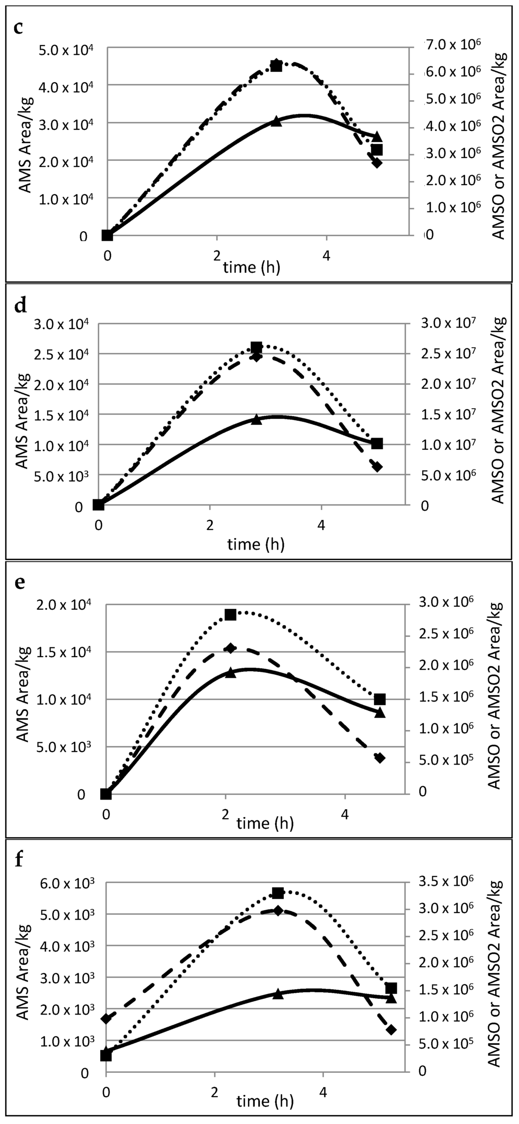 2.5. Time Dependency of Appearance of the Garlic-Derived Metabolites in the Human Milk after Consumption of Garlic