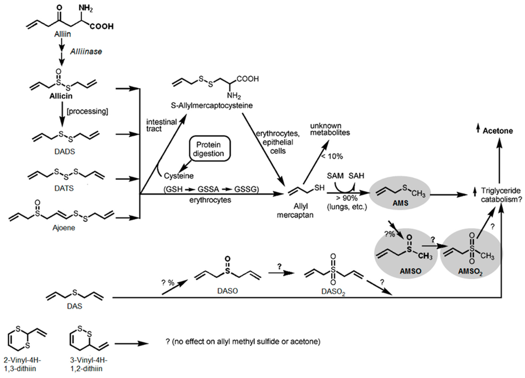 - Lawson, L.D.; Wang, Z.J. Allicin and allicin-derived garlic compounds increase breath acetone through allyl methyl sulfide: Use in measuring allicin bloavailability. J. Agric. Food Chem. 2005, 53, 1974–1983. [Google Scholar] [CrossRef] [PubMed]