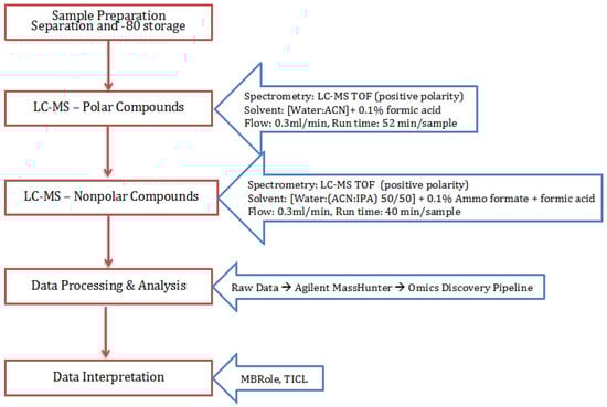 Flowchart for the method followed for the extraction, isolation, and detection of small molecules (general metabolites and lipids).