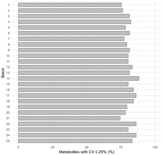 - QC check by comparing the RSD of QC samples in the current dataset against the internal database of QC sample RSDs (based on interday RSDs recorded over one year).