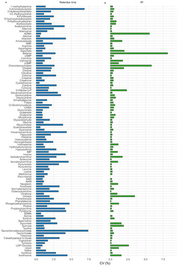- Virgiliou, C.; Sampsonidis, I.; Gika, H.G.; Raikos, N.; Theodoridis, G.A. Development and validation of a hilic-ms/ms multitargeted method for metabolomics applications. Electrophoresis 2015, 36, 2215–2225. [Google Scholar] [CrossRef] [PubMed]