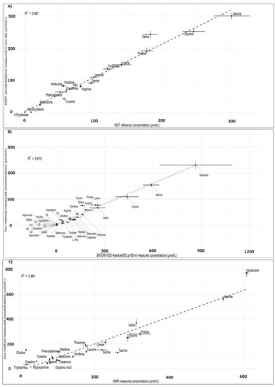- Reliability: as shown by the excellent correlation between metabolite concentrations measured using our method and the NIST SRM plasma reference values, our method serves a standardised and reliable platform for metabolomics studies.