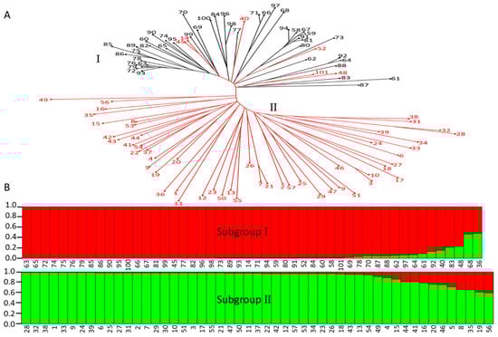 - Evanno, G.; Regnaut, S.; Goudet, J. Detecting the number of clusters of individuals using the software STRUCTURE: A simulation study. Mol. Ecol. 2005, 14, 2611–2620. [Google Scholar] [CrossRef] [PubMed]