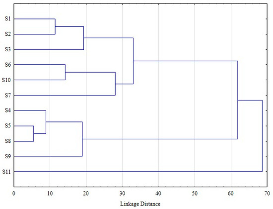The cluster analysis, based on all quantified metabolites, revealed the existence of two groups (S1, S2, S3, S6, S10, S7 and S4, S5, S8, S9), while S11 is singled out from all the other subjects (Figure 3). These differences are explicable, taking into consideration the ratio of AUC of metabolite 2 to AUC of metabolite 4, and are not dependent on subject metadata (age, gender, and BMI).