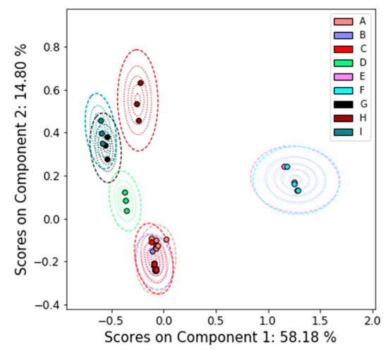 - Babamoradi, H.; Berg, F.V.D.; Rinnan, Å. Bootstrap based confidence limits in principal component analysis—A case study. Chemom. Intell. Lab. Syst. 2013, 120, 97–105. [Google Scholar] [CrossRef]