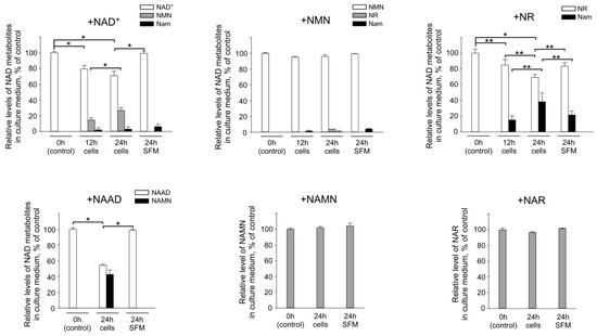Kulikova, V.; Shabalin, K.; Nerinovski, K.; Yakimov, A.; Svetlova, M.; Solovjeva, L.; Kropotov, A.; Khodorkovskiy, M.; Migaud, M.E.; Ziegler, M.; et al. Degradation of Extracellular NAD+ Intermediates in Cultures of Human HEK293 Cells. Metabolites 2019, 9, 293. https://doi.org/10.3390/metabo9120293