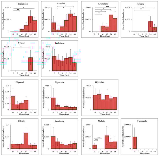 Chicago/Turabian StyleKultschar, Bethan, Ed Dudley, Steve Wilson, and Carole A. Llewellyn. 2019. "Intracellular and Extracellular Metabolites from the Cyanobacterium Chlorogloeopsis fritschii, PCC 6912, During 48 Hours of UV-B Exposure" Metabolites 9, no. 4: 74. https://doi.org/10.3390/metabo9040074