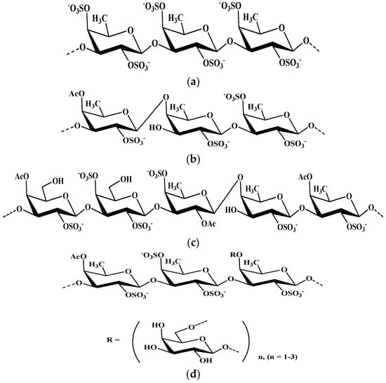 Structural fragments of fucoidans. (a) I structural group. (b) II structural group. (c,d) III structural group.