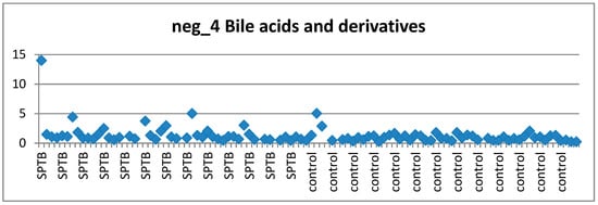 An unbiased approach (untargeted LCMS) was combined with a knowledge based approach [] in the search for biomarker candidates. Candidate biomarker selection guided by expert knowledge is especially important in a disease such as SPTB where no efficacious treatment yet exists as potential therapies can be indicated by the biomarkers that give clues to disease etiologies [].
