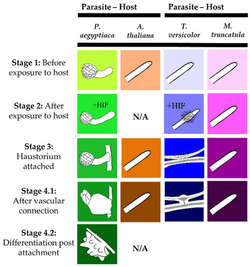 - Honaas, L.; Wafula, E.; Yang, Z.; Der, J.; Wickett, N.; Altman, N.; Taylor, C.; Yoder, J.; Timko, M.; Westwood, J.; et al. Functional genomics of a generalist parasitic plant: Laser microdissection of host-parasite interface reveals host-specific patterns of parasite gene expression. BMC Plant Biol. 2013, 13, 9. [Google Scholar] [CrossRef] [PubMed]