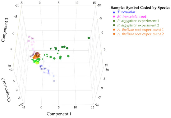 - Jaeger, C.; Lisec, J. Statistical and multivariate analysis of MS-based plant metabolomics data. In Plant Metabolomics: Methods and Protocols, Methods in Molecular Biology; António, C., Ed.; Humana Press: New York, NY, USA, 2018; Volume 1778, pp. 385–396. [Google Scholar]