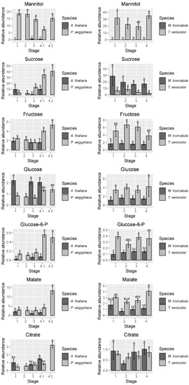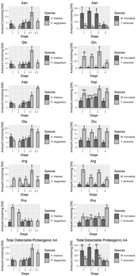 2.2. T. versicolor Preferentially Accumulates Asparagine/Aspartate