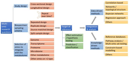 - Buescher, J.M.; Driggers, E.M. Integration of omics: More than the sum of its parts. Cancer Metab. 2016, 4, 4. [Google Scholar] [CrossRef] [PubMed]