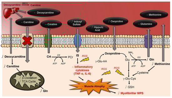 - Sato, E.; Mori, T.; Mishima, E.; Suzuki, A.; Sugawara, S.; Kurasawa, N.; Saigusa, D.; Miura, D.; Morikawa-Ichinose, T.; Saito, R.; et al. Metabolic alterations by indoxyl sulfate in skeletal muscle induce uremic sarcopenia in chronic kidney disease. Sci. Rep. 2016, 6, 36618. [Google Scholar] [CrossRef] [PubMed]