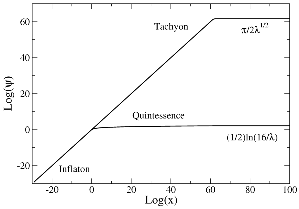 - Gorini, V.; Kamenshchik, A.; Moschella, U.; Pasquier, V. Tachyons, scalar fields, and cosmology. Phys. Rev. D 2004, 69, 123512. [Google Scholar] [CrossRef]