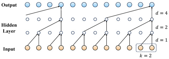Framework of TCN with a filter length of 2, and dilation is in hidden layers.