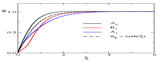 The total energy is solely a functional of the scalar field (or in dimensionless variables) since for any given scalar profile the fermion contributions are determined by the Dirac Equation (4) and/or its downstream scattering Equation (14). As already mentioned, this extremal condition cannot be formulated as a set of differential equations due to the non-local structure of the VPE. In a non-renormalizable model with a finite ultra-violet cut-off, , a finite and countable set of eigen-functions of the stationary Dirac equation exists and the functional derivative can be computed via the Feynam–Hellmann theorem. Eventually, this produces an implicit field equation that can be solved self-consistently. Adopting that method to compute the VPE requires the limit on top of the self-consistent approach. Not only does that seem numerically infeasible,3 it also spoils the nice features of the spectral method, Equation (13), that all entries are ultra-violet finite and the renormalization conditions can be unambiguously implemented. Having discussed that, we therefore consider a parameterization for the scalar profile that is modeled after the kink with a rational function as correction4