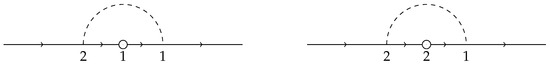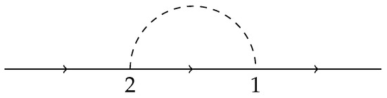 where the subindex C means that the integration is performed along the Schwinger-Keldysh contour. In this way, due to the properties of the path integral, correlators in which only fields of type 1(2) appear are chronologically (anti-chronologically) ordered. However, we might be interested in evaluating correlators that are neither chronologically nor anti-chronologically ordered. For example, if we want to gain access to the distribution function, we would need to compute , where the ordering of the operators is as written. Note also that, although in Equation (1) there are no terms containing, at the same time, both types of fields, the propagator of the field is not diagonal in the indices [16].