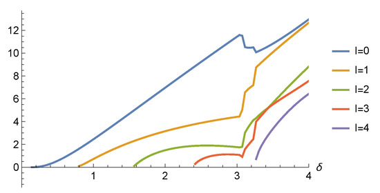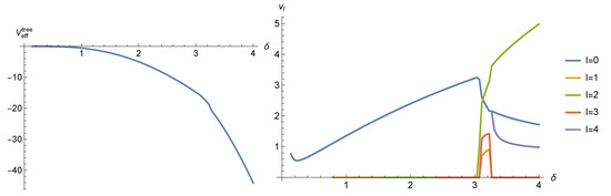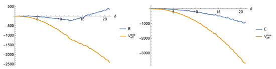 Figure 6 in the right panel. Both the effective potential and the energy are below the corresponding values in the left panel and, in addition, the energy has a non-minimum. This behavior demonstrates for instance that taking a restriction of the angular momenta as regularization for a calculation in the homogeneous background gives wrong results.