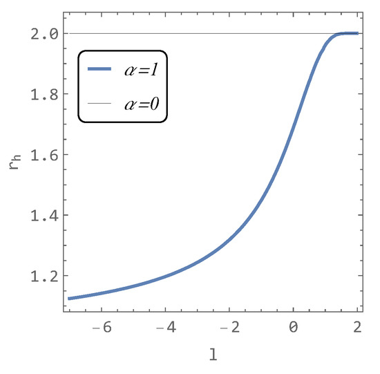The position of the horizon decreases as the parameter l decreases, reaching the limit given by (6). For α = 1 , the limiting case is r hl = 1 , as shown in Figure 2.